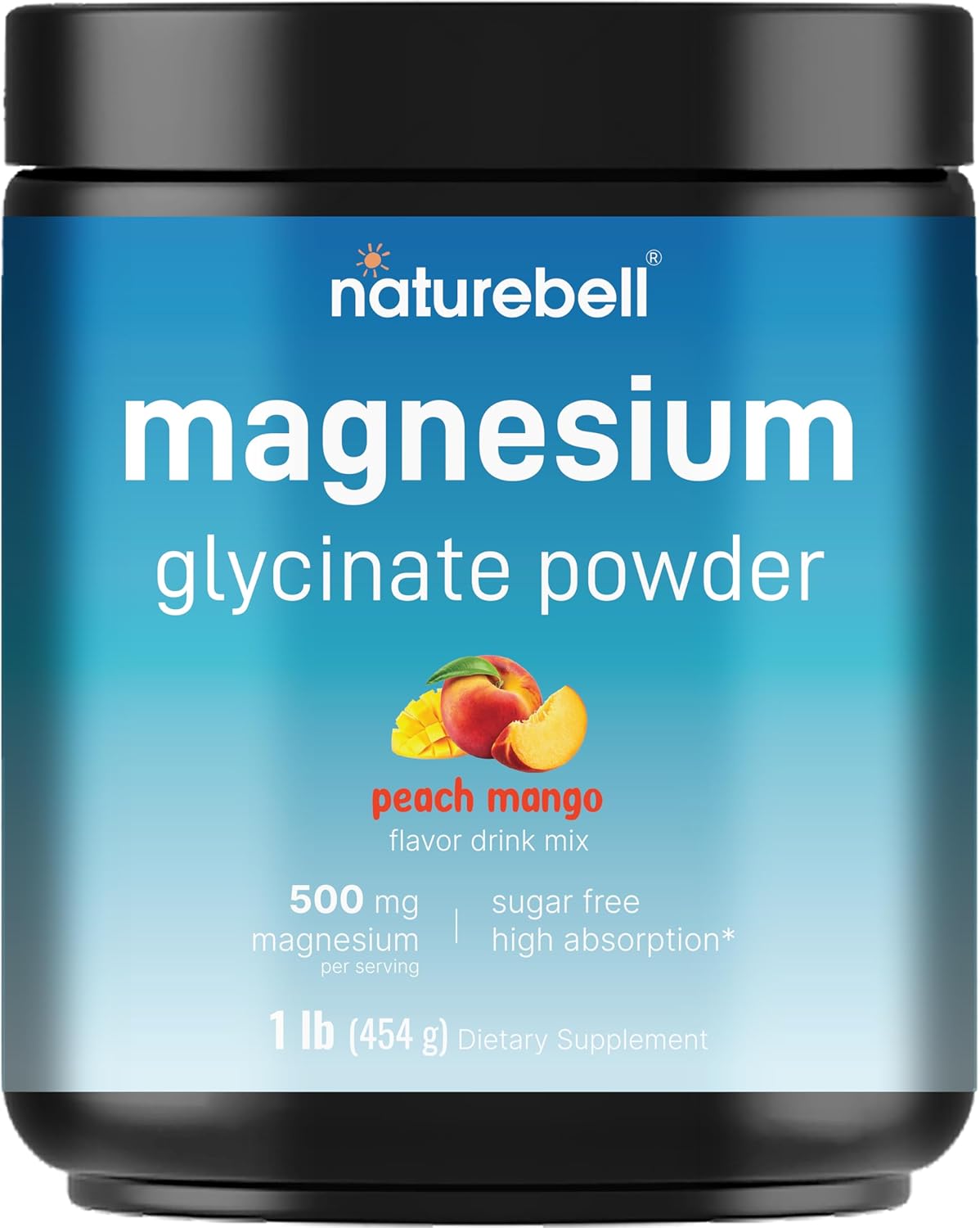 Naturally Flavored Peach-Mango Magnesium Glycinate Powder, 500Mg Per Serving, 1 Pound Supply, Bitterless Flavor With A Sugar Free Sweet Taste