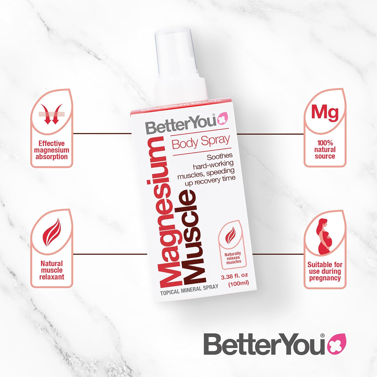 Magnesium Supplement, Betteryou High Strength Magnesium Muscle Oil Spray | Natural Vegan Magnesium Chloride Liquid For Sleep, Muscle Recovery Use For Feet And Legs, 600 Sprays, Made In Uk