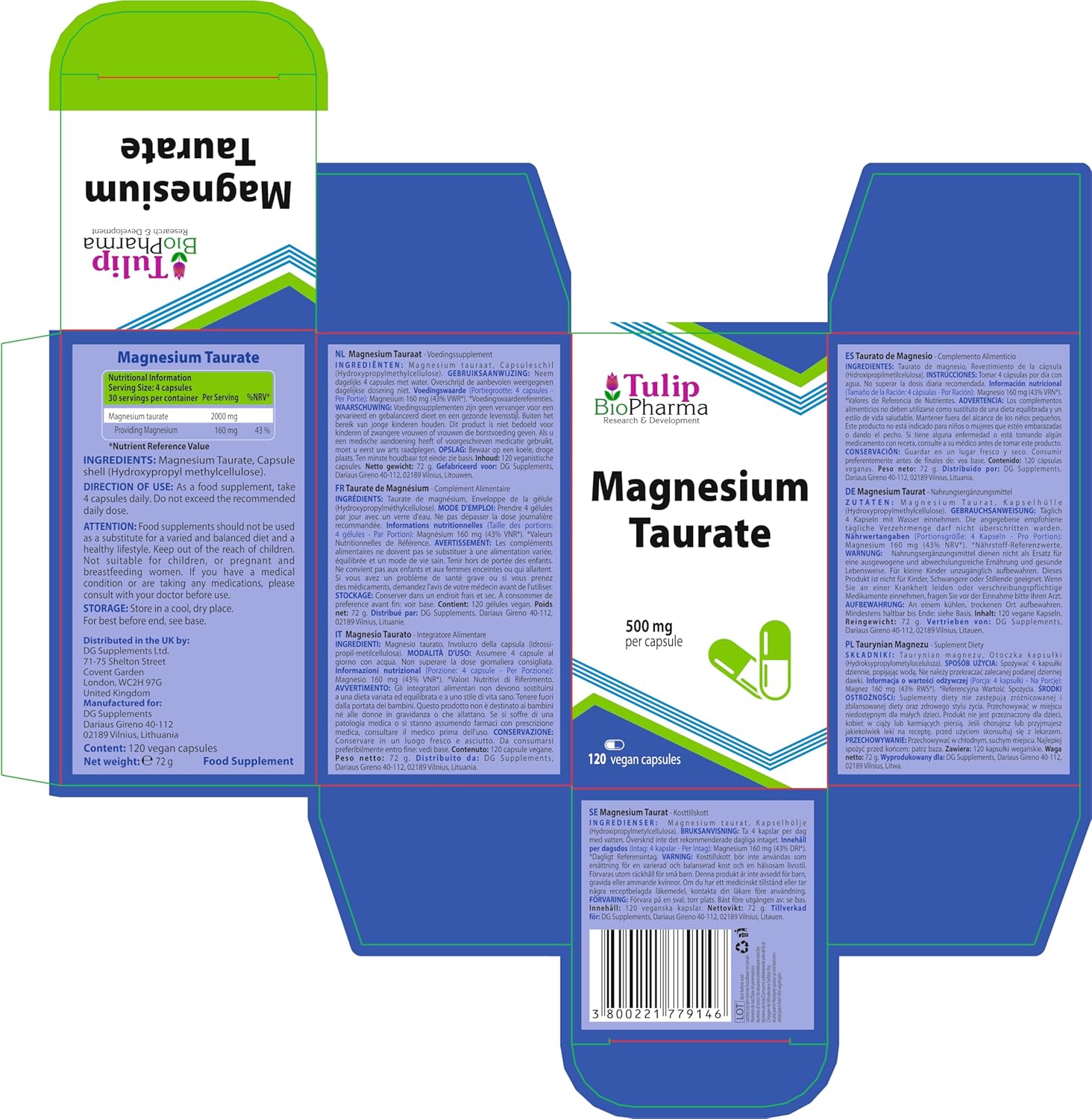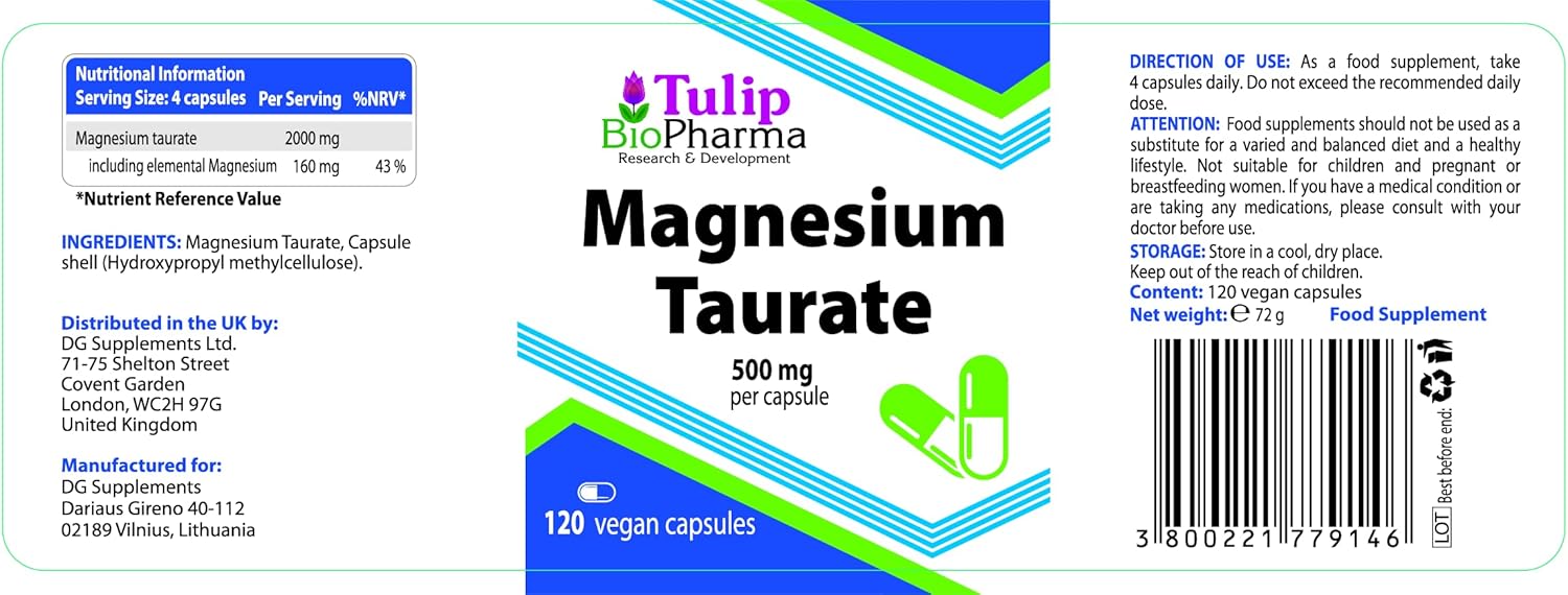 Magnesium Taurate 2000Mg Per Serving 120 Vegan Capsules, 3Rd Party Lab Tested