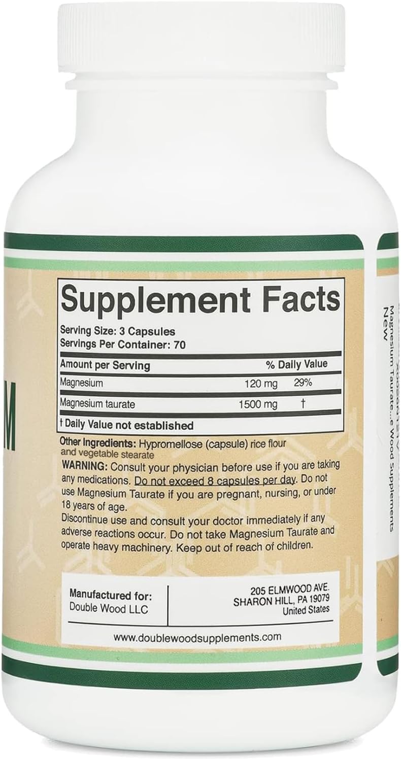 Magnesium Taurate Supplement For Cardiovascular Health To Boost Magnesium Levels (1,500Mg Per Serving, 210 Vegan Capsules) Non-Gmo, Gluten Free, By Double Wood Supplements
