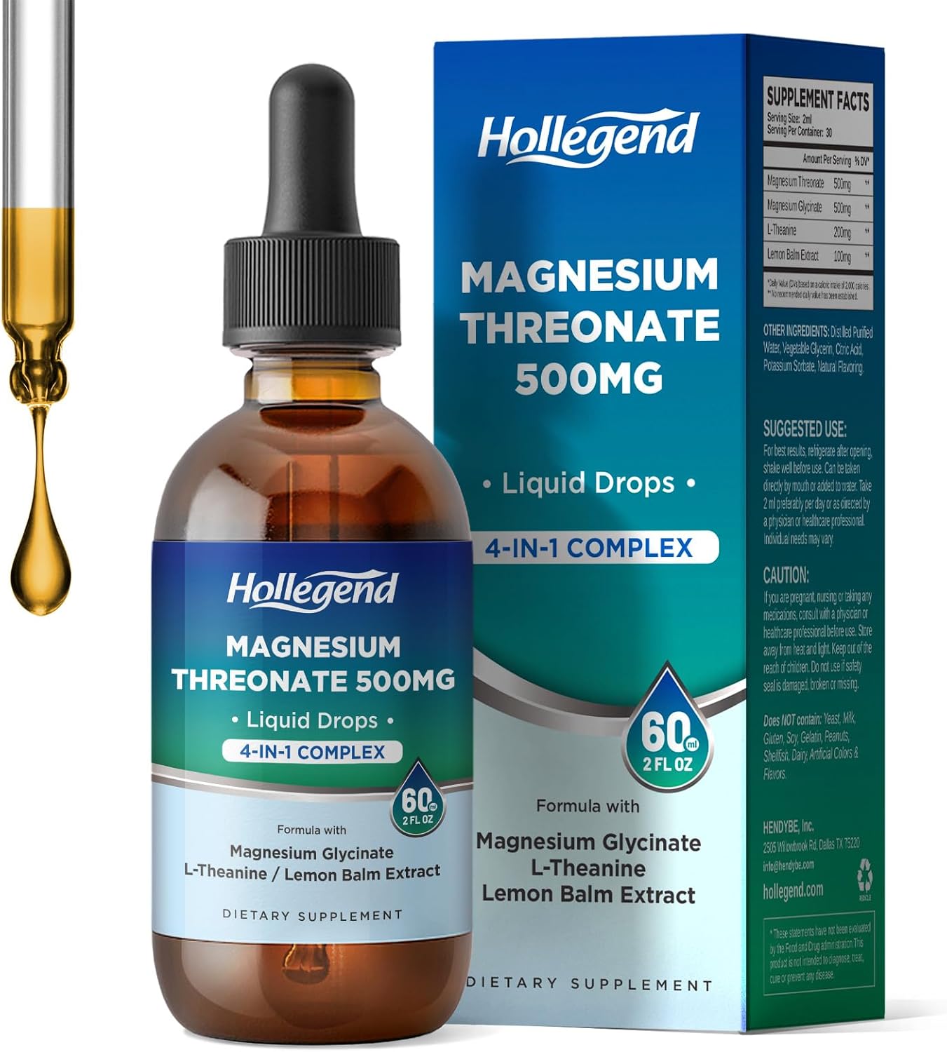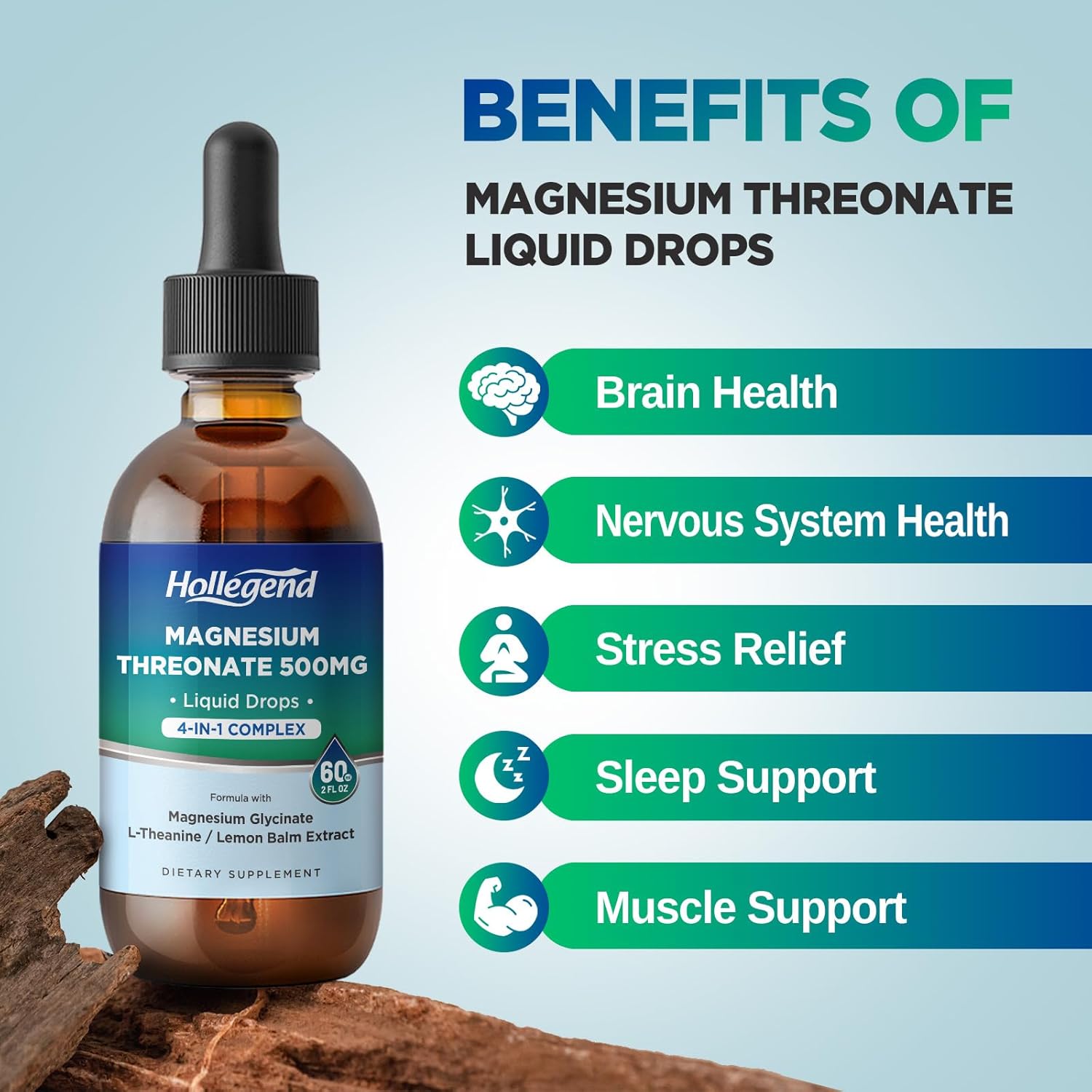 Magnesium Threonate Liquid Drops, Magnesium Threonate 500Mg With Glycinate, L-Theanine, Lemon Balm, Supplement For Kids & Adults, Brain Health, 2 Fl Oz