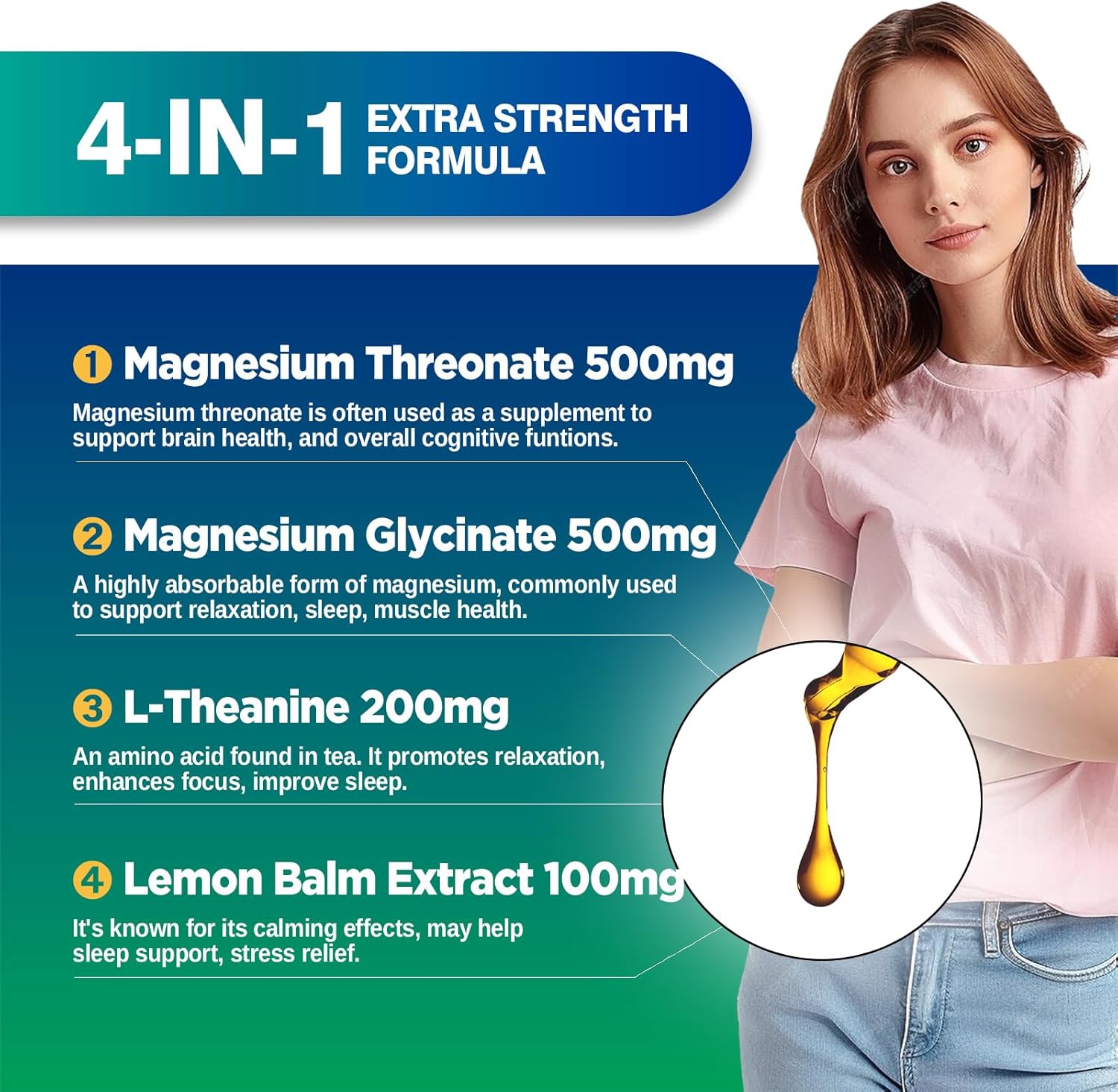 Extra Strength Formula: Each Dose Delivers 500Mg Of Magnesium Threonate, 500Mg Of Magnesium Glycinate, 200Mg Of Theanine, And 100Mg Of Lemon Balm. Carefully Crafted For Maximum Benefits And Absorption