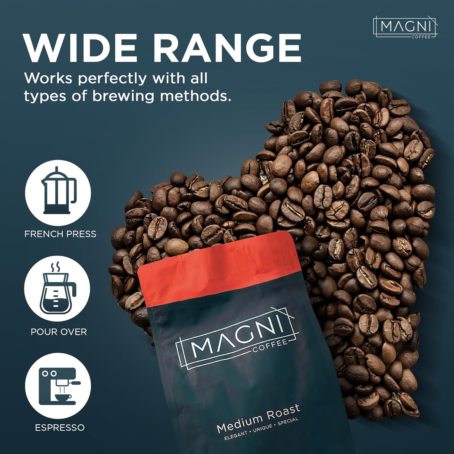 Light Roast Medium Roast Dark Roast Decaf Add To Cart Logshoppablemetrics("Module-5", True) Add To Cart Logshoppablemetrics("Module-5", True) Add To Cart Logshoppablemetrics("Module-5", True) Add To Cart Logshoppablemetrics("Module-5", True) Customer Reviews .Aplus-V2 .Aplus-Review-Right-Padding { Padding-Right: 0.1Rem; } 4.3 Out Of 5 Stars 286 .Aplus-V2 .Aplus-Review-Right-Padding { Padding-Right: 0.1Rem; } 4.3 Out Of 5 Stars 286 .Aplus-V2 .Aplus-Review-Right-Padding { Padding-Right: 0.1Rem; } 4.3 Out Of 5 Stars 286 .Aplus-V2 .Aplus-Review-Right-Padding { Padding-Right: 0.1Rem; } 4.3 Out Of 5 Stars 286 Price $19.98 $ 19 . 98 $19.98 $ 19 . 98 $19.98 $ 19 . 98 $19.98 $ 19 . 98 Low Acid Certified Organic Coffee Origin Mexico Peru Peru Honduras Aroma Sweet Hay, Crisp Cedar, Almond And Walnut, Black Tea Soft Dark Chocolate, Fresh Spring Herbs, Mild Citrus And Stone Fruit Soft Dark Chocolate, Fresh Spring Herbs, Mild Citrus And Stone Fruit Caramel, Browning Sugars, Nutty, Sweet And Bright Flavor Almond And Peanut Butter, Mild Citrus, Baked Sweet Pastries, Baking Spices Herbal, Floral, Nutty, Simple And Sweet Herbal, Floral, Nutty, Simple And Sweet Aromatic Oak And Cedar, Caramel And Chocolate, Mild Citrus And Warming Nuttiness Recommended For Pourover, French Press, Aeropress French Press, Espresso French Press, Espresso Versatile On All Brewing Methods Drink Magni Coffee And Enjoy Every Sip Certified Organic Coffee By Ccof - 2022 Every Bag Of Magni Coffee Is Certified Organic By Ccof (California Certified Organic Farmers) 2022 Because We Value Our Consumers And The Environment So Much. This Ensures That Before The Organic Seal Is Applied, Our Coffee Farmers Have Not Used Any Prohibited Substances On Their Property, Such As Synthetic Pesticides, Herbicides, Or Fertilizers. Low Acid Coffee Do You Occasionally Have Gastrointestinal Discomfort After Drinking Coffee Because Of Ulcers, Gastritis, Or Gerd, Or Do You Have Dental Problems Or A Sensitive Stomach Despite The Fact That Coffee Is Naturally Acidic, We Can Produce Pure, Delicious Low Acid Coffee Because To The Way We Grow And Process Our Coffee Beans. By Switching To Magni Coffee, You May Enjoy A Cup Of Coffee That Is Tasty, Fresh, And Easy On Your Teeth And Stomach. Mold-Free Our Goal Is To Provide You With A Cup Of Coffee That Is Delicious, Tasty, High In Antioxidants, Fair Trade, Organic, And Totally Free Of Harmful Mycotoxins That Might Harm Your Health Or The Health Of Those Close To You. There Is Nothing More Crucial. Enjoy Your Coffee Fearlessly Because You Have Magni Coffee Single Origin The Traceability Of Single Origin Coffee, Which Lets You Know Where Your Coffee Actually Comes From And That It Is A Distinct Variety And Not A Blend, Is Its Most Significant Feature. It'S An Admission That The Coffee Comes From A Certain Farm Situated In A Distinctive Environment, And That Its Flavor Reflects Its Origin By Exhibiting Characteristics Unique To The Region Where The Particular Coffee Was Grown. How To Prepare The Perfect Cup Of Coffee With Magni Espresso You Will Need: A Espresso Machine Single Shot Coffee Grounds: 2 Tbsp 30 Seconds Pour Over You Will Need: A Pour Over Gear 6Oz Of Water Coffee Grounds: 1.5-2 Tbsp 2-4 Minutes French Press You Will Need: A French Press 6Oz Of Water Coffee Grounds: 1.5-2 Tbsp 4-5 Minutes