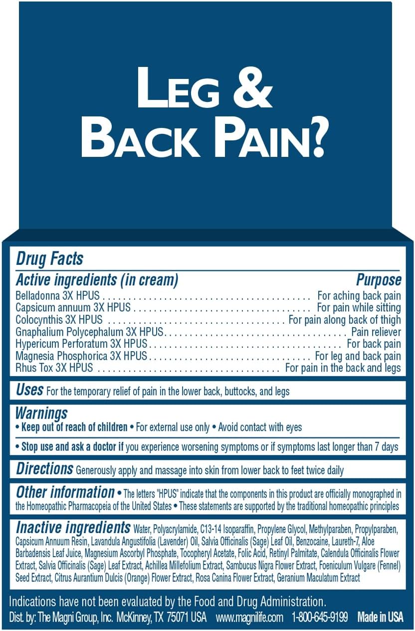 Magnilife Leg & Back Pain Relief Cream, Fast-Acting Pain Relief, Naturally Soothe Burning, Tingling And Stabbing Pains With Aloe And Calendula - 4Oz