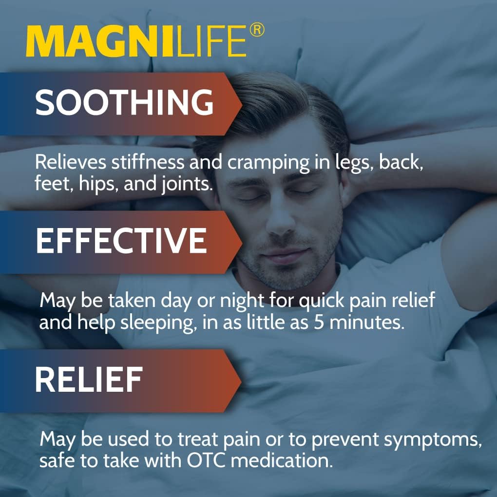 Soothing Formula - Help Is Here Allowing You To Sleep Pain-Free And Wake Up Refreshed. Made With Natural Ingredients, Magnilife Developed A Highly Effective, Quinine-Free Formula For The Temporary Relief Of Muscle Pain, Cramping And Stiffness Of The Legs, Feet, Back, Hips And Joints. May Also Be Taken Throughout The Day For Pain Relief That Can Work In As Little As 5 Minutes
