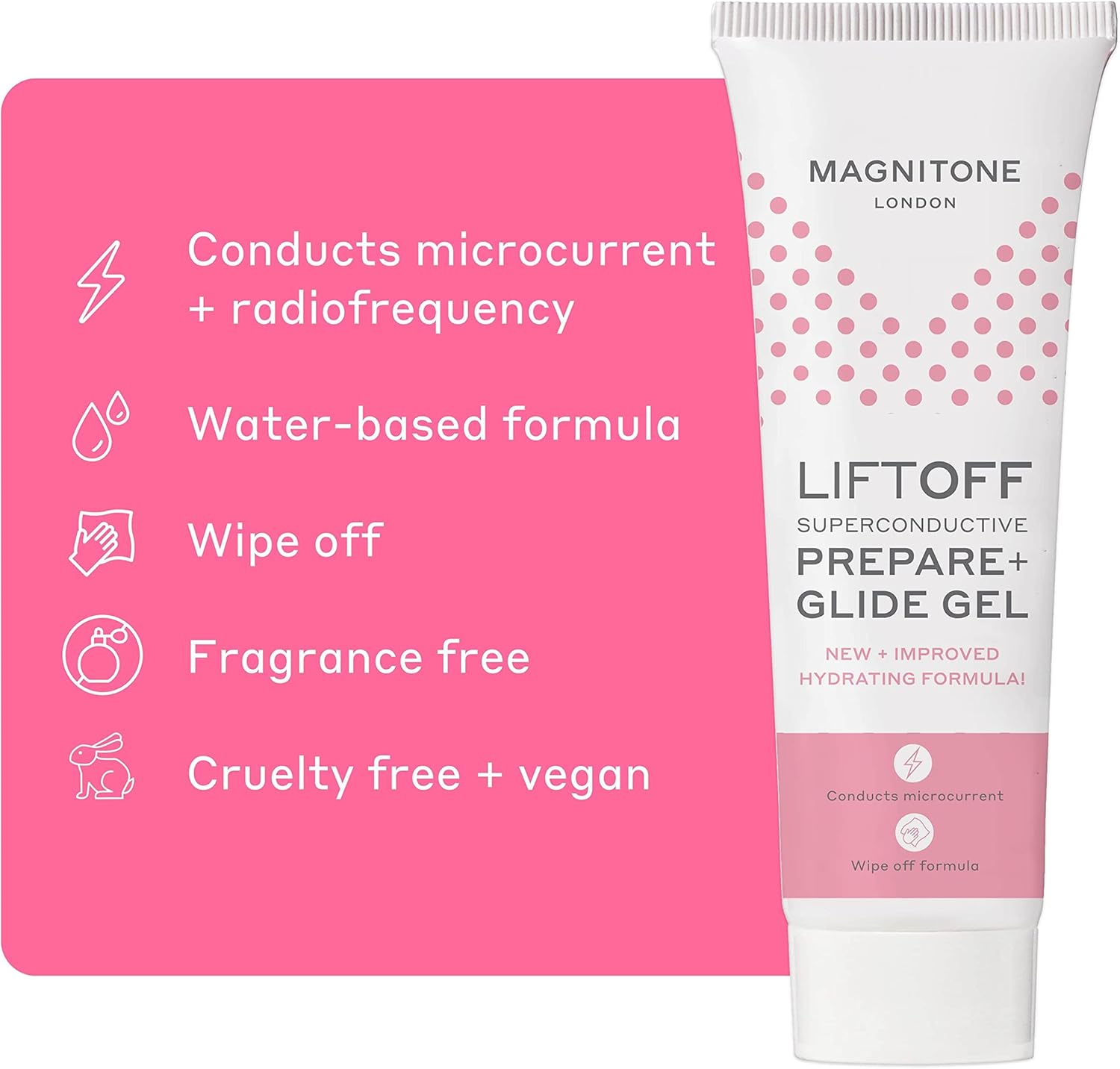 Magnitone Liftoff Superconductive Prepare + Glide Gel For Microcurrent Facial Toning & Radiofrequency Devices, Hydrating Wipe Off Formula, Water-Based, Fragrance Free, Cruelty Free & Vegan (Pack Of 1)
