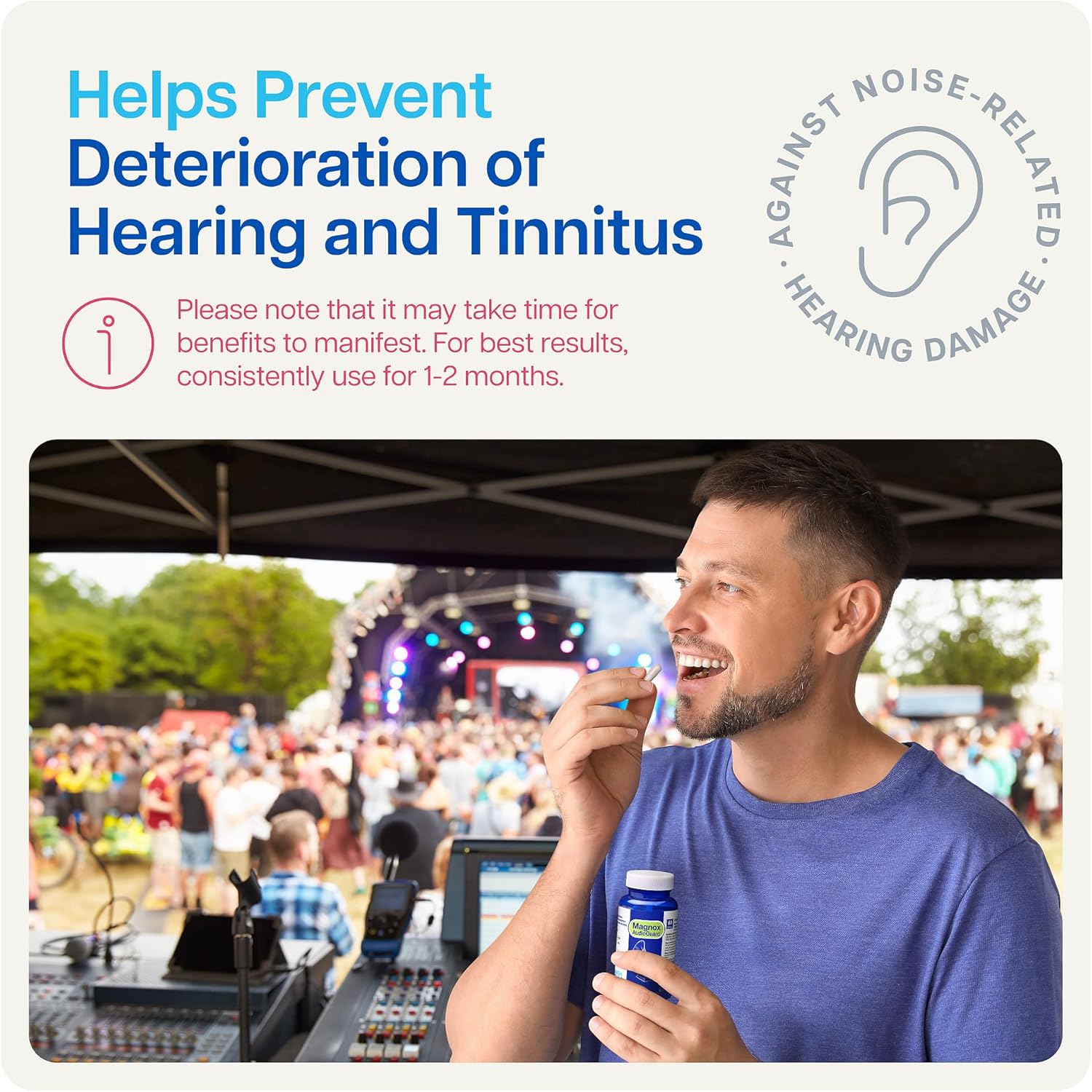 Tailored For Long-Term Ear Care. Studies Show That Magnesium Capsules Therapy Helps Prevent Hearing Damage And Loss. Taken Regularly, This Supplement Also Provides Tinnitus Relief For Ringing Ears: Magnesium In It Is Backed Up By Zinc, B6, And Ginkgo