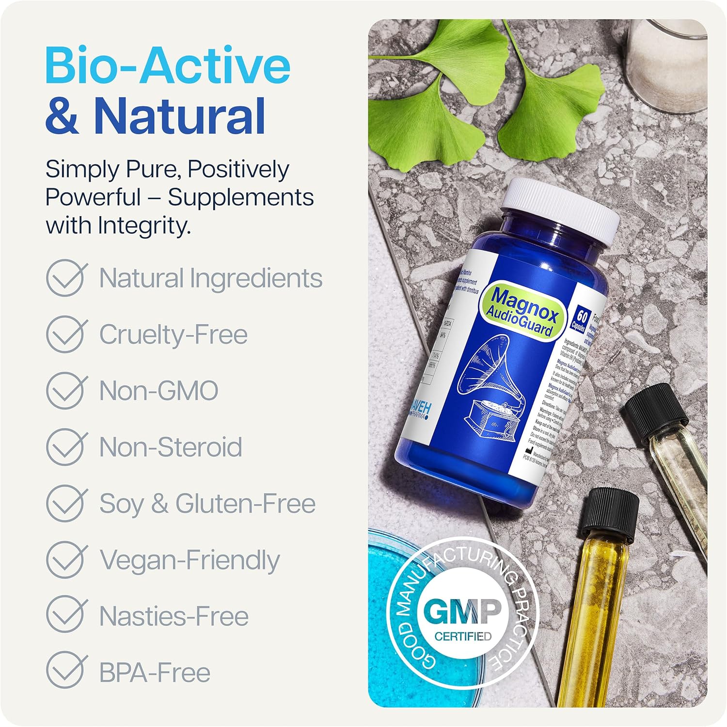 Magnox® Audioguard Magnesium Supplement For Tinnitus Treatment | Tinnitus Relief For Ringing Ears | Natural Magnesium Complex | Dead Sea Minerals | High Absorption Magnesium | 60 Capsules