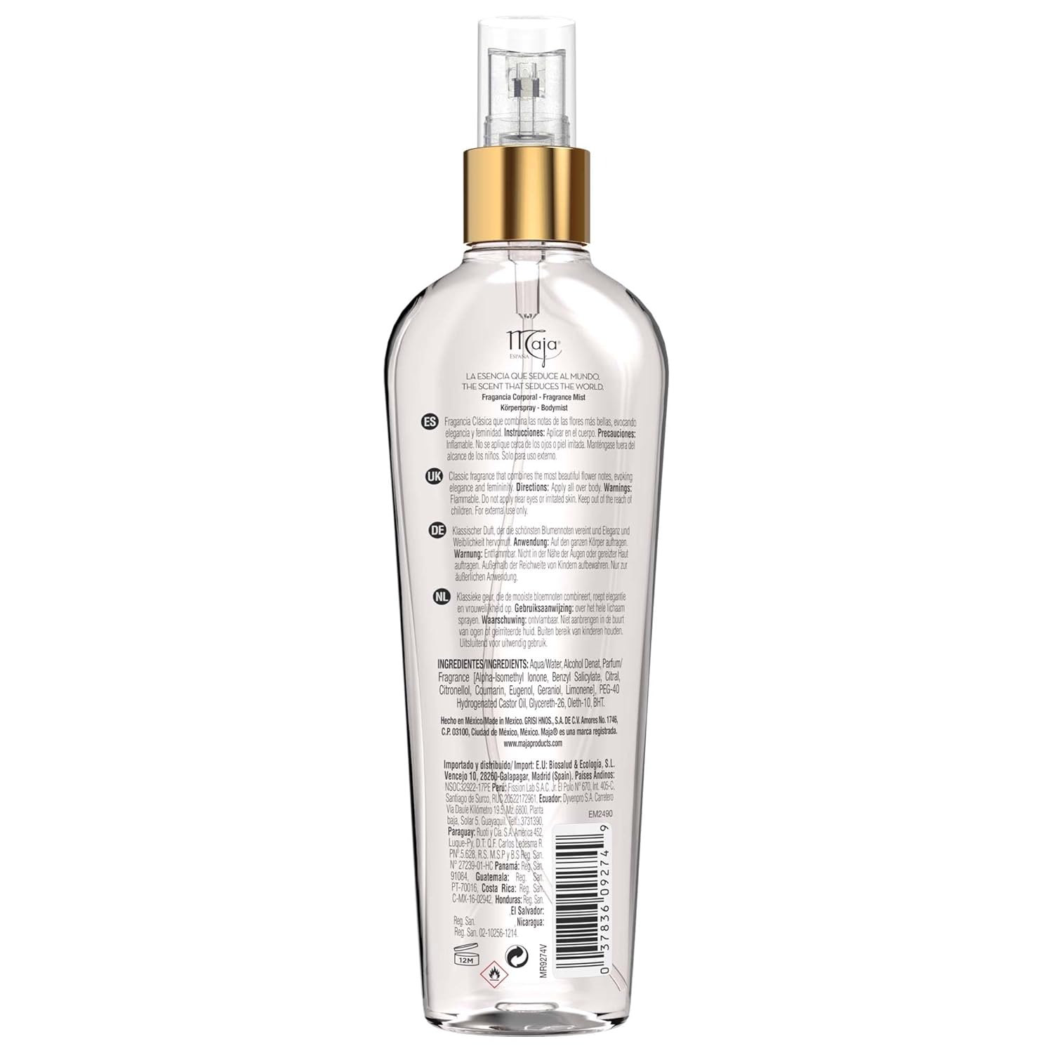 Maja Classic Perfumed Body Mist, Delicately Scented To Refresh Your Body With Flowers Essential Oils, Transparent, 8.1 Fl Oz, Spray Bottle