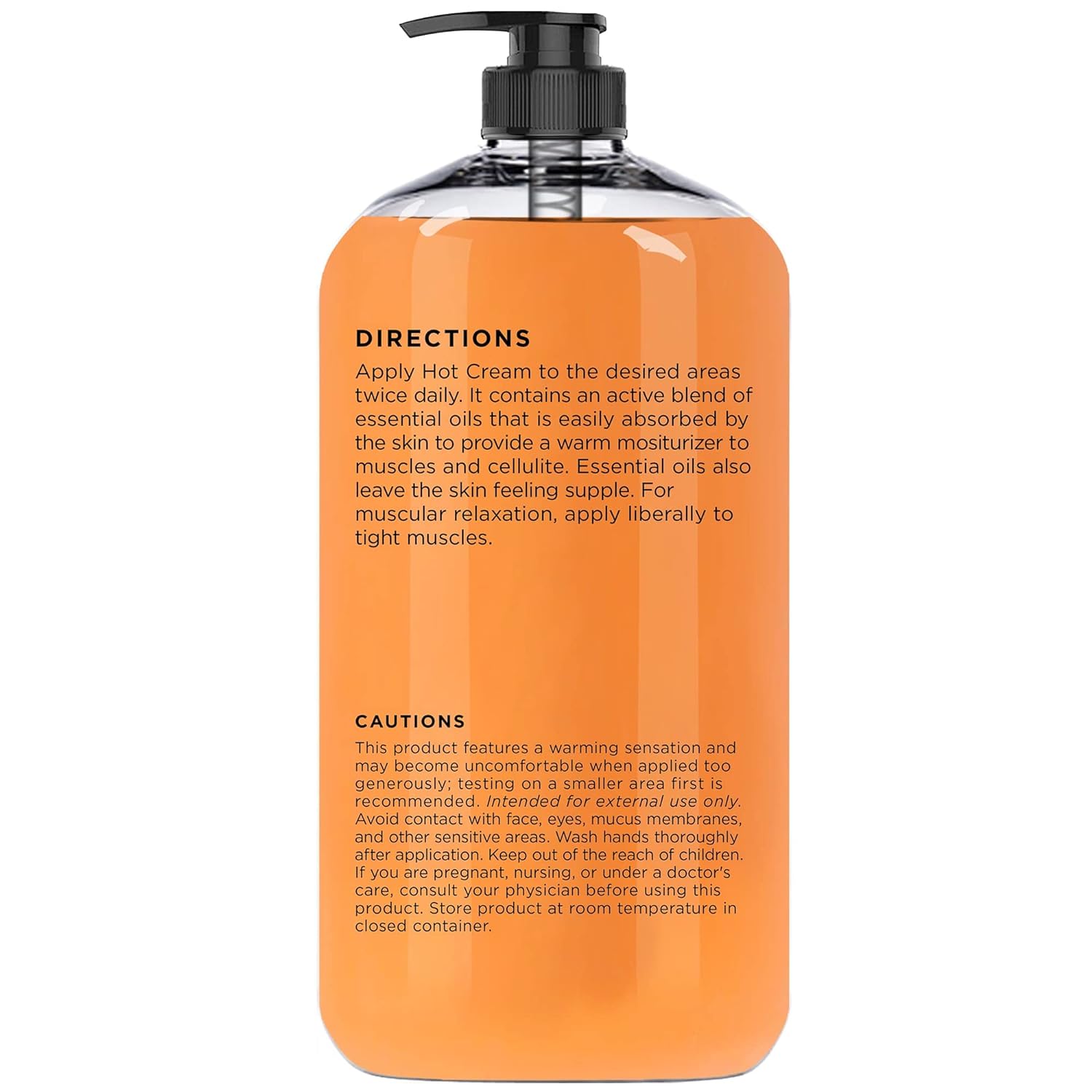Skin Firming: Majestic Pure Hot Cream for belly and skinMassage: The presence of ingredients like camphor & cinnamon oil in the skin tightening cream for stomach and body helps relax sore musclesEasy Absorption: The cream is highly absorbent and deeply nourishes skin. This cream also has a pleasant aroma that gives a relaxing massage experienceEthically Sourced & Cruelty-Free: The heat cream for belly and body is ethically sourced, cruelty-free, free from harsh chemicals and added colorsMajestic Pure 87% Organic Hot Cream, muscle cream is a two-in-one solution for sore muscle while reducing the appearance of cellulite. It contains an active blend of essential oils that is easily absorbed by the skin to relax muscle and reduce the appearance of cellulite. It smooths and firms intensively and leaves the skin feeling noticeably suppler, promotes a healthy toned skin and improved elasticity. benefits of Majestic Pure Hot Cream Include:Soothes and Reduces the appearance of cellulite Helps firm and tone skin Makes an excellent relaxing massage cream Made with natural and organic ingredients, no harmful chemicals and cruelty free Safety Waring: The Hot Cream as indicated by its name is Hot and creates a hot sensation on your skin and should be used with caution as different skin types will react differently. Please use a very small amount first on a small area, leave and continue if you are comfortable to proceed. It is not recommended to have a shower or bath intermediately after applying as it may make your skin hotter. For Muscle or for use as a Massage gel, apply liberally to the problem area and gently massage into the skin. Allow product to completely absorb. Wash hands after use. Keep out of the reach of children. Discontinue use if irritation occurs. Avoid contact with eyes. If swallowed seek medical help right away. Do not use on the spots with injury, eczema, or dermatitis Click the button at the top of this page to with confidence