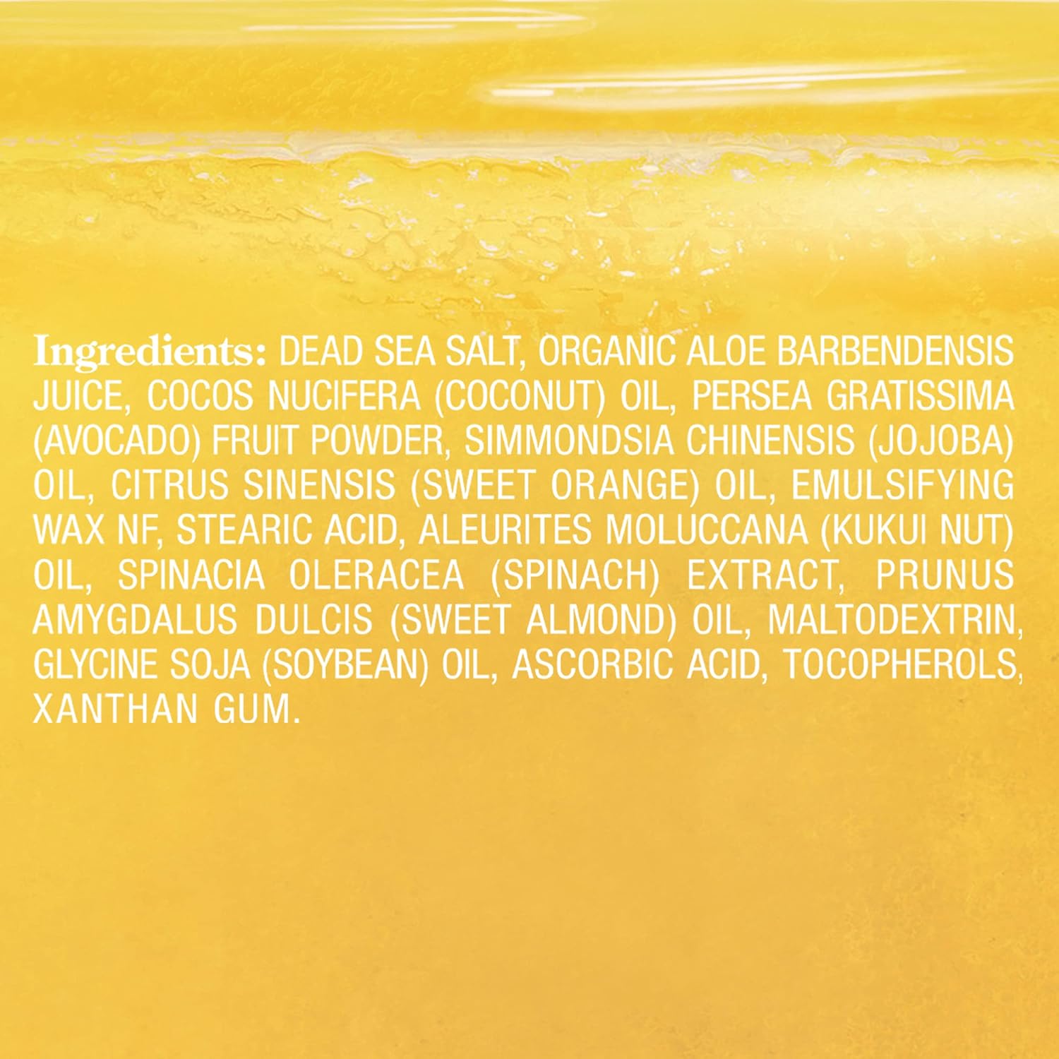 Crafted with wonderful nourishing ingredients such as Sweet Orange Oil, Dead Sea Salt, Organic Aloe Vera Juice, and Coconut Oil
