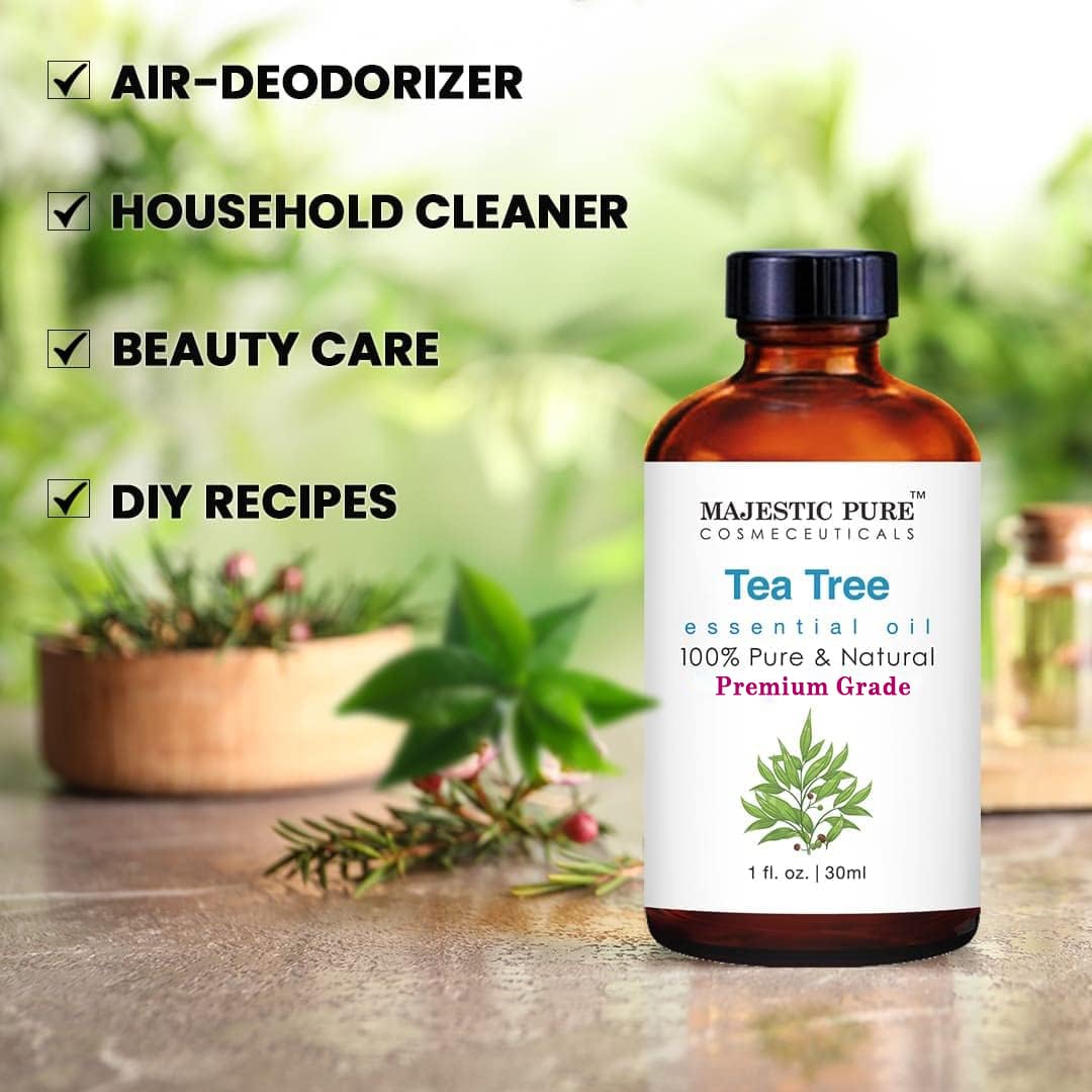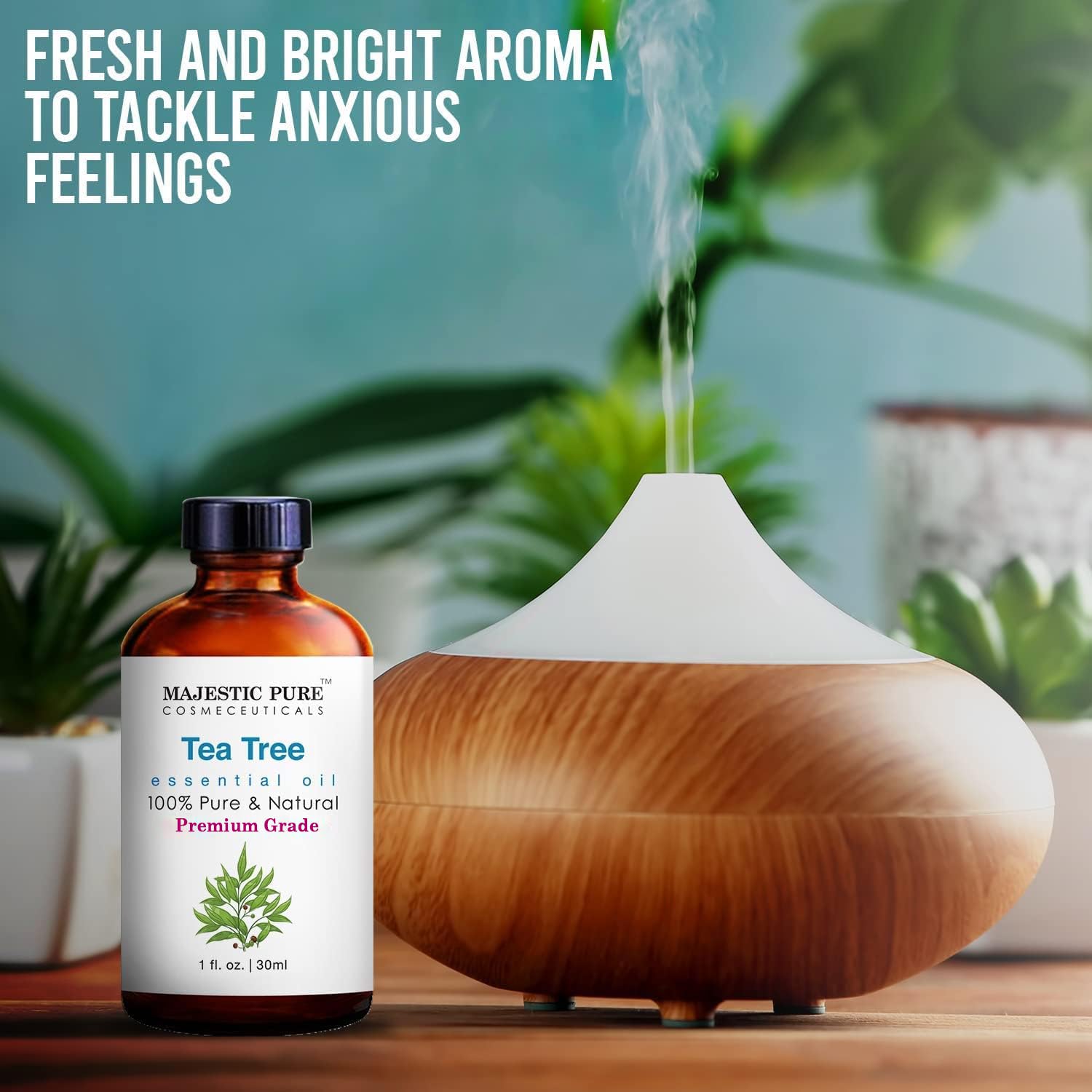 Majestic Pure Tea Tree Essential Oil - Pure, Natural And Premium Grade - Tea Tree Oil For Skin, Face, Hair, Nails, Acne, Scalp, Massage, Aromatherapy, Diffuser, Topical & Household Uses - 1 Fl Oz
