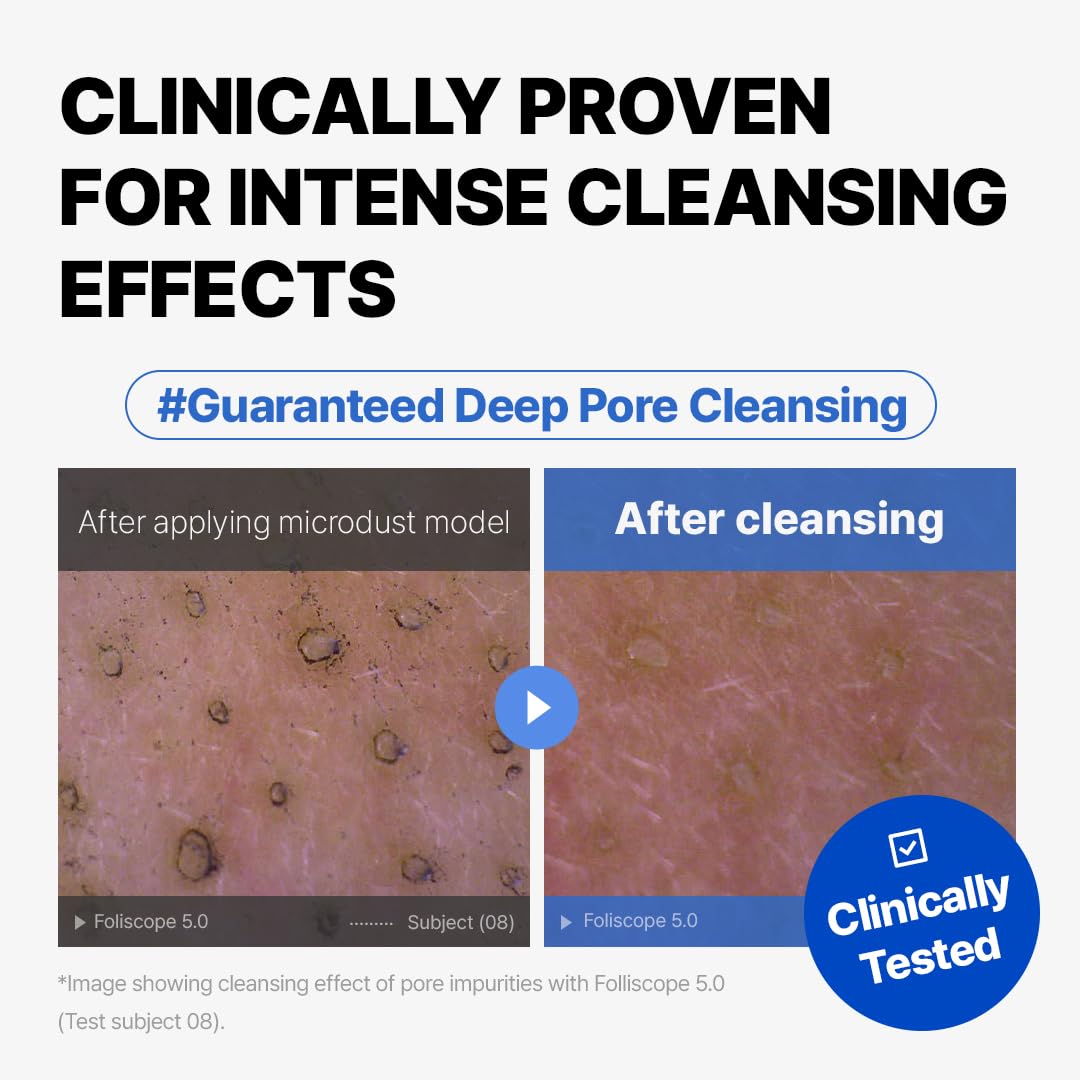 Powerful Deep Cleansing Inside and Out: Effectively removes waterproof makeup such as mascara (cleanses 90.14%) and base makeup (cleanses 89.20%), while also targeting and purifying deep within pores, removing 99.41% of pore impurities and significantly reducing blackheads and whiteheads