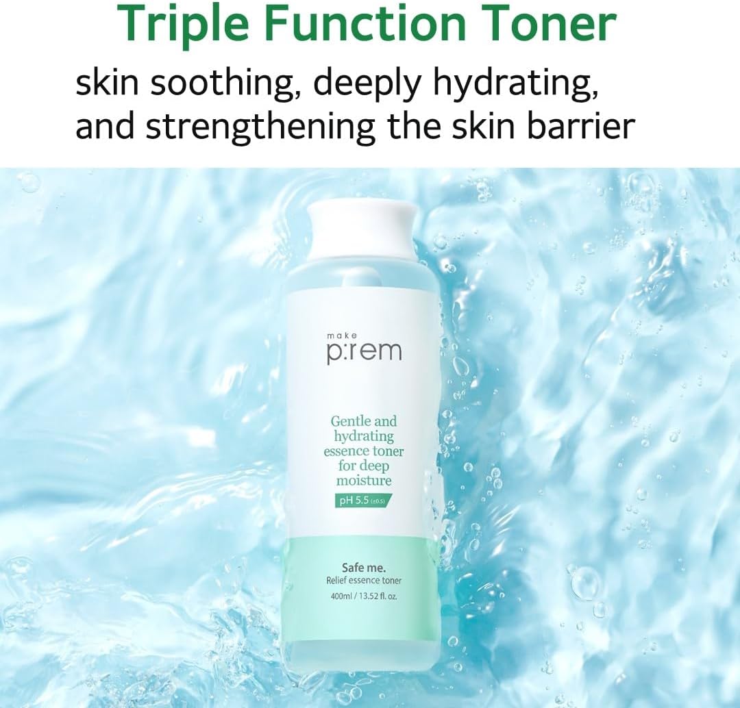 Make P:Rem Safe Me. Relief Essence Toner, Quick And Deep Hydrating Face Toner, All Skin Types, 24-Hour Moisturizing, Eve Vegan, Korean Skin Care, 400Ml, 13.52 Fl.Oz
