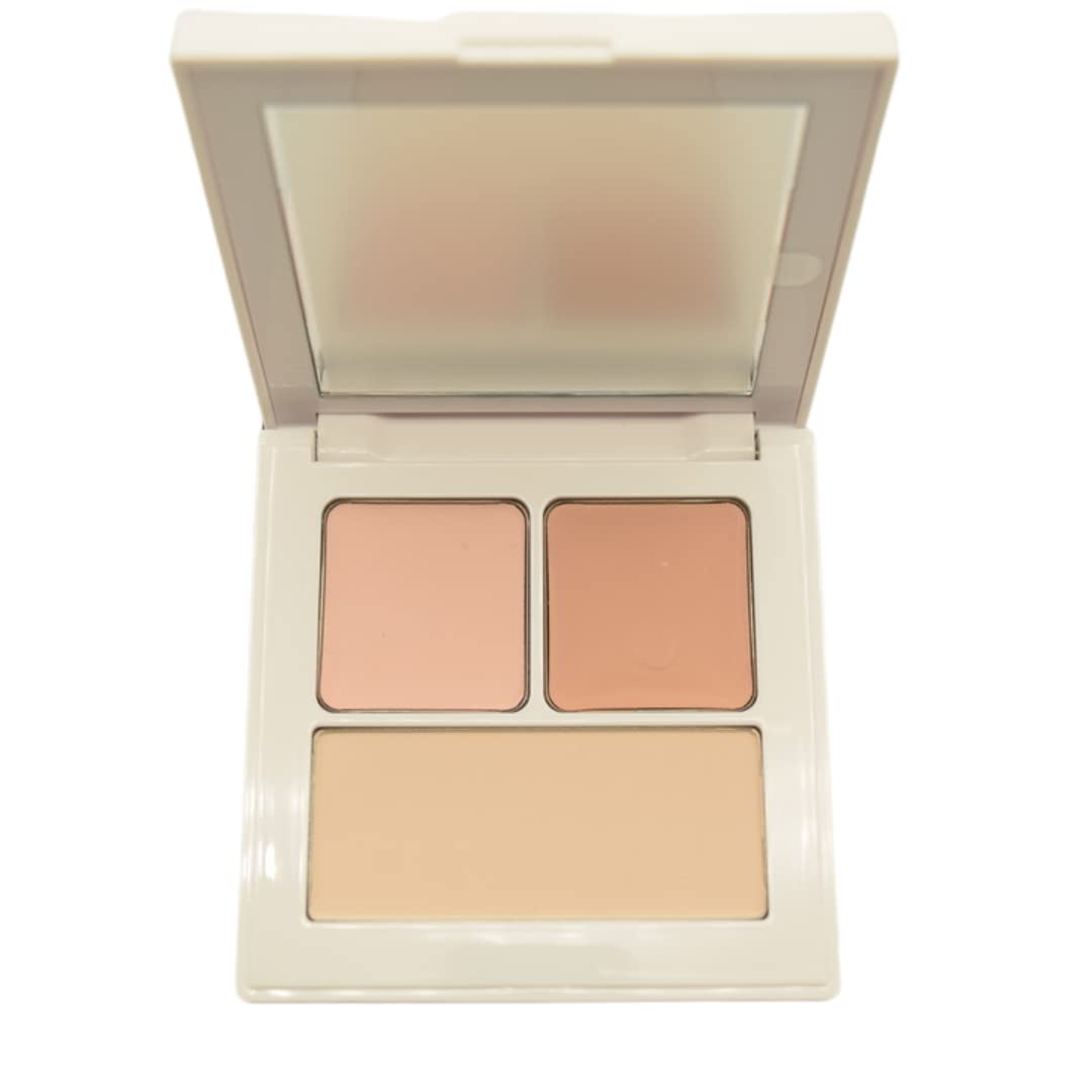 It features two shades of primer for custom blending in hues for different skin tones and a translucent powder to set the lids and diffuse shadow