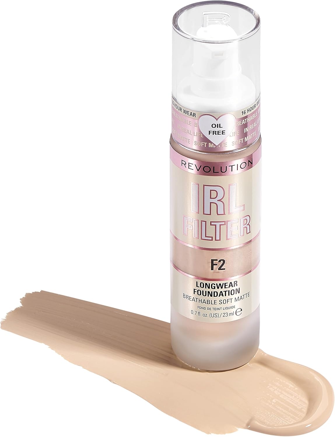 Makeup Revolution Irl Filter, Longwear Foundation, Medium To Full Coverage, Matte Finish, 16 Hour Wear, F11.2, Medium/Dark Skin Tones, 23Ml