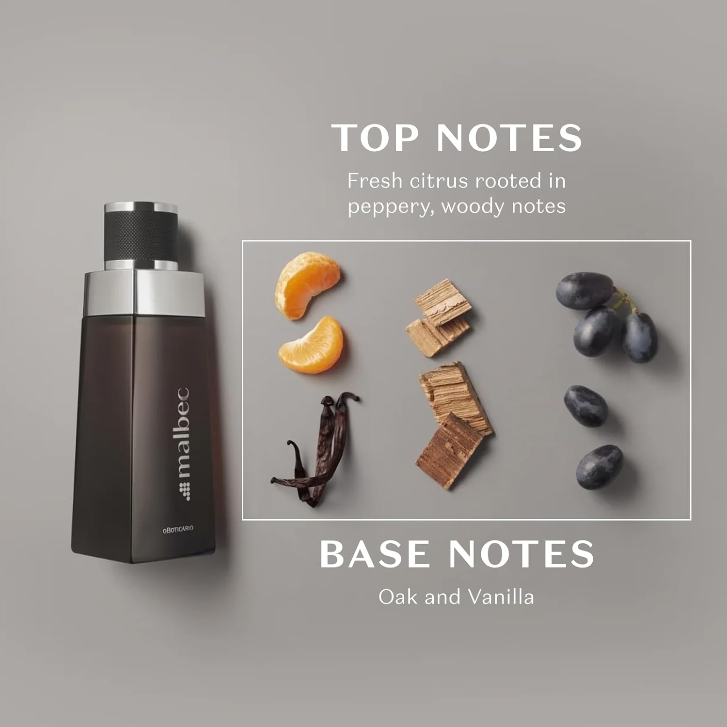 Woody Charm With a Twist: A men's fragrance that combines the warmth of woody notes with the coziness of Oak and Vanilla. Malbec does just that, creating a fresh masculine scent that's timeless and inviting. Spray with charisma for all day freshness smell