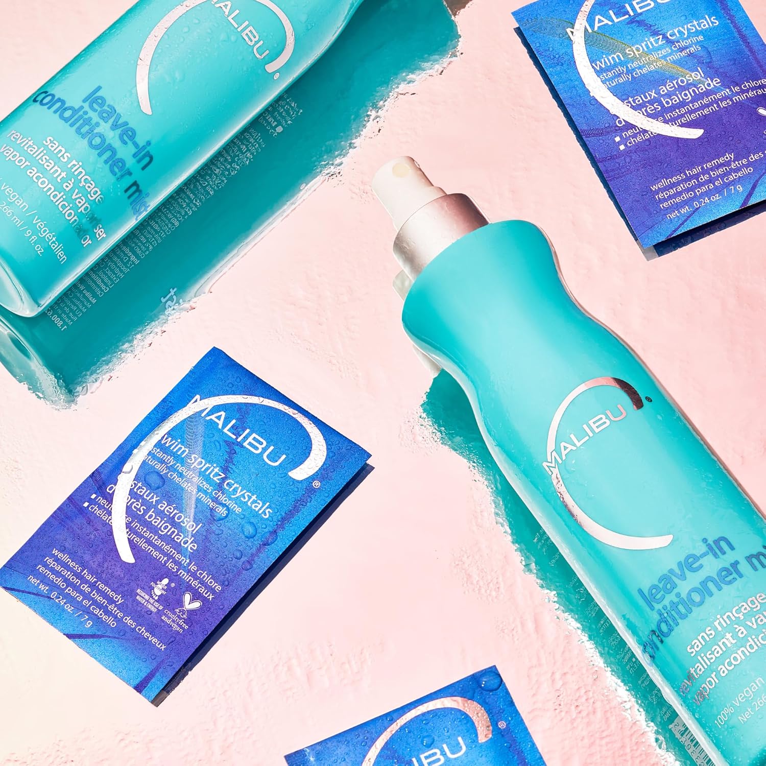 Malibu C Swim Spritz Crystals (1 Packet) - Contains Vitamin C To Eliminate Chlorine From Skin & Hair Post Swim - Non-Irritating Chlorine Neutralizer For Hair + Skin