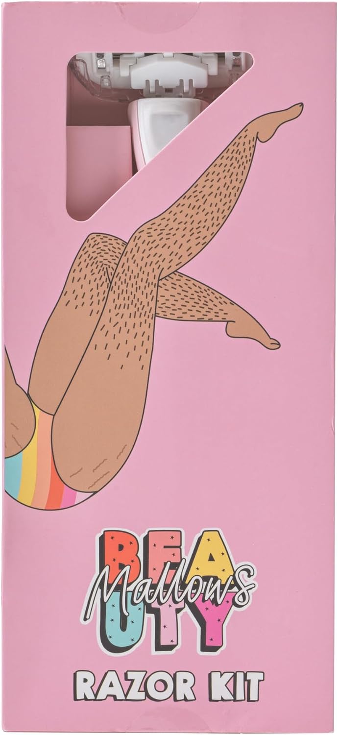 Mallows Beauty Razor Kit, Contains A Razor Handle And 2 Heads With Vegan Lubricating Strips, Aloe Vera And Vitamin E, Razors For Women, Pack Of 2