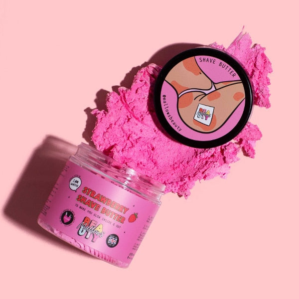 Product Information:If you want silky soft pins, then you need my Strawberry Shave Butter. It helps prevent ingrowns, shaving rashes and helps your shave last so much longer, hello dolphin smooth skin!,Features:I Help Prevent Those Nasty Ingrowns, Shaving Rashes And Help Your Shave Last So Much Longer. For Dolphin Smooth Skin, Just Holla At Me, Your Strawberry Bestie,Product Specification:Glycerin, Aqua, Sorbitol, Sodium Cocoyl Isethionate, Disodium Lauryl Sulfosuccinate, Sodium Chloride, Phenoxyethanol, Tetrasodium EDTA, Prunus Armeniaca Kernel Oil, Kaolin, Polysorbate 80, Parfum* CI45100, CI16035,Product Uses:1. Jump in the shower, do a little happy dance or sing like no one can hear you... this is YOUR time babe, and it's all about you. 2. For the silkiest legs and softest shave, scrub first with my watermelon scrub. 3. Smother your legs or underarms with my luxury shave butter and get shaving! Shave downwards first and any delicate areas. 4. Wash off and follow with one of my body butters for an extra glow. Now go flaunt your beautiful bod all around town, you stunner you,Recyclable:Jar and lid plastic - check local recycling