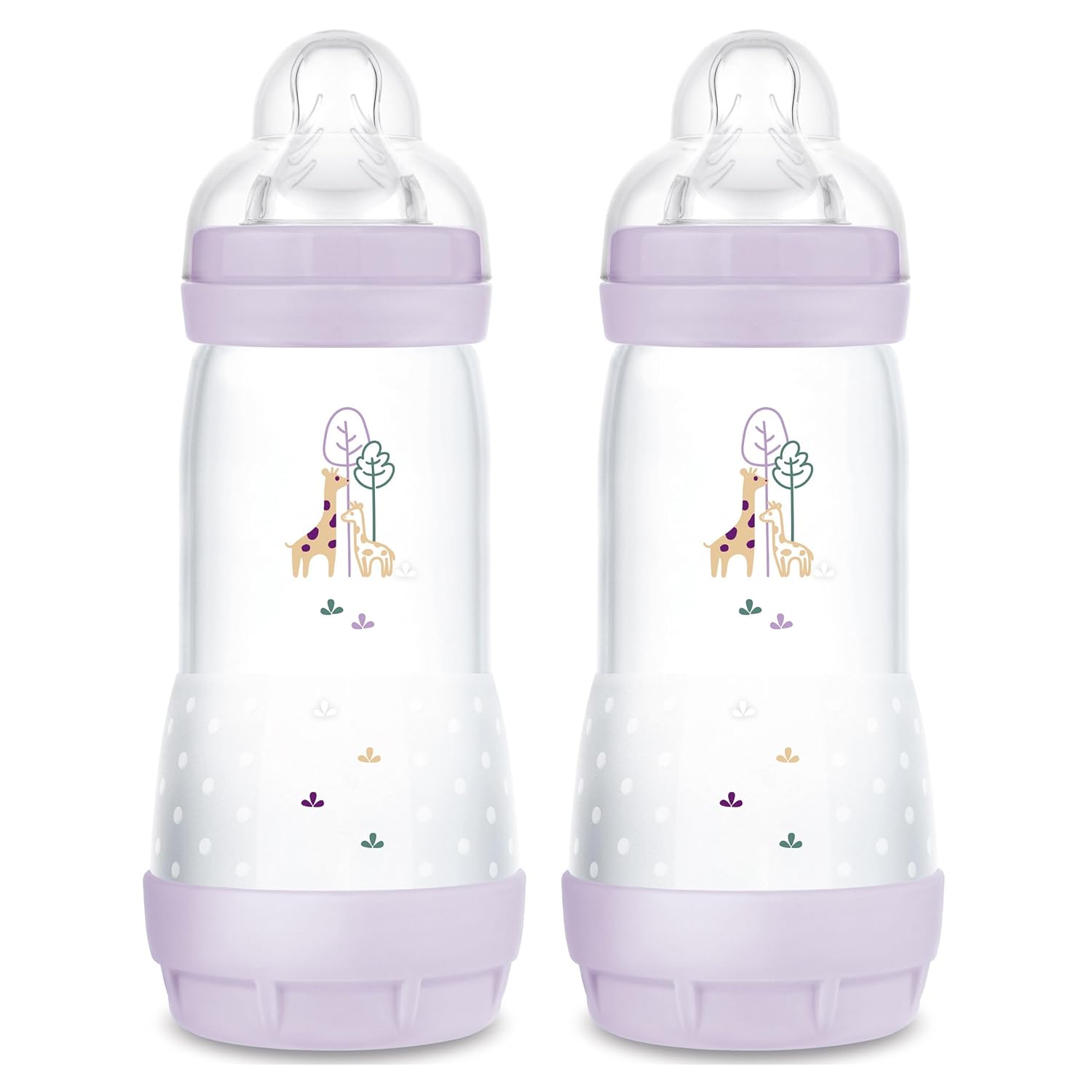 About this item ANTI-COLIC VENT, A clinically proven internal vent system significantly reduces colic, spit-up, burping, and gas, enhancing infant comfort during feeding. BREASTFEEDING FREINDLY, An elongated silicone nipple, designed like a breast nipple, facilitates an easy transition between breastfeeding and bottle feeding, supporting mother-baby bonding. STERILIZING FEATURE, MAM bottles offer convenience and hygiene with a 3-minute microwave sterilization process. The bottle is dishwasher-safe, with a removable top & bottom ensuring easy cleaning. THE ANTI-SLIP TEXTURE helps the nipple remain securely in your infant's mouth, ensuring a steady feed. MAM baby bottles are 100% free from BPS & BPA, promoting a safe, non-toxic feeding experience. SUSTAINABILITY, Crafted with bio-circular materials, the MAM 2 Pack, 11 ounces, ideal for your baby boy & the environment.  See more product details,ANTI-COLIC VENT, A clinically proven internal vent system significantly reduces colic, spit-up, burping, and gas, enhancing infant comfort during feeding,BREASTFEEDING FREINDLY, An elongated silicone nipple, designed like a breast nipple, facilitates an easy transition between breastfeeding and bottle feeding, supporting mother-baby bonding,STERILIZING FEATURE, MAM bottles offer convenience and hygiene with a 3-minute microwave sterilization process. The bottle is dishwasher-safe, with a removable top & bottom ensuring easy cleaning,THE ANTI-SLIP TEXTURE helps the nipple remain securely in your infant's mouth, ensuring a steady feed. MAM baby bottles are 100% free from BPS & BPA, promoting a safe, non-toxic feeding experience,SUSTAINABILITY, Crafted with bio-circular materials, the MAM 2 Pack, 11 ounces, ideal for your baby boy & the environment