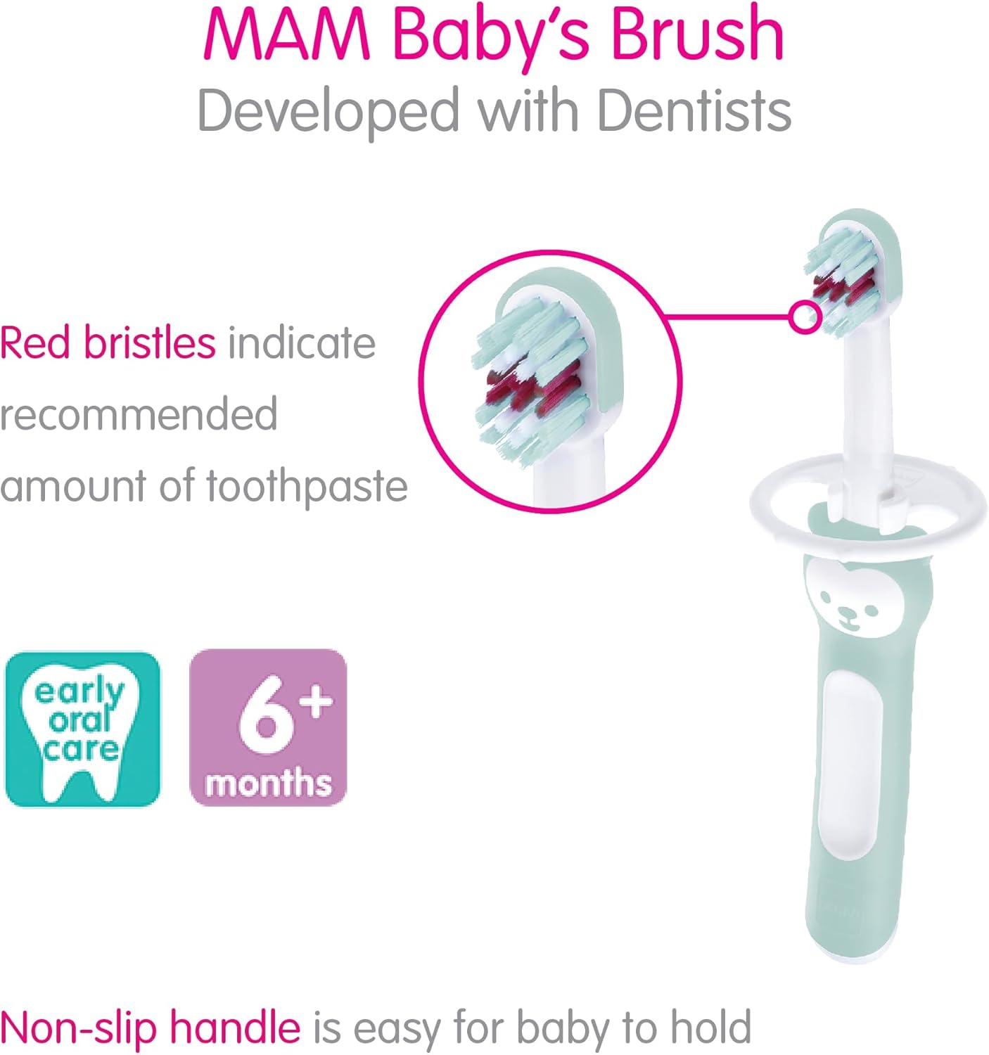 MAM Baby Toothbrushes (2 Baby's Brushes and 1 Safety Shield), Toothbrushes with Brushy The Bear Character, Interactive App, for Boys 6+ Months, Blue : Health & Household