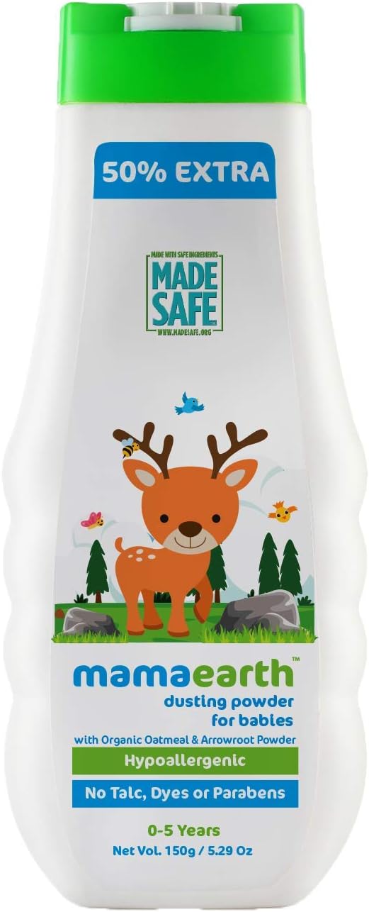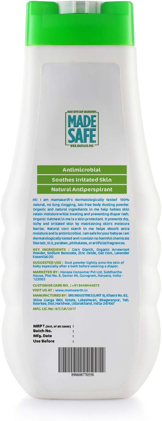 Natural Talcum Powder - Mamaearth's Powder Is A Safer Option Against Talcum Powders. It Has The Highest Quality Natural Ingredients10For Dry Skin - It Keeps Skin Soft. It Soothes the baby's Skin And Makes The Baby Feel Comfortable10Made In The Himalayas- Crafted With Care Amidst The Serene Slopes Of The Himalayas. Experience The Purity Of Our Products Made With Natural Ingredients10Asia's First Made Safe Certified Brand10Mamaearth Baby Powder With Arrowroot & Oatmeal, Made In The Himalayas