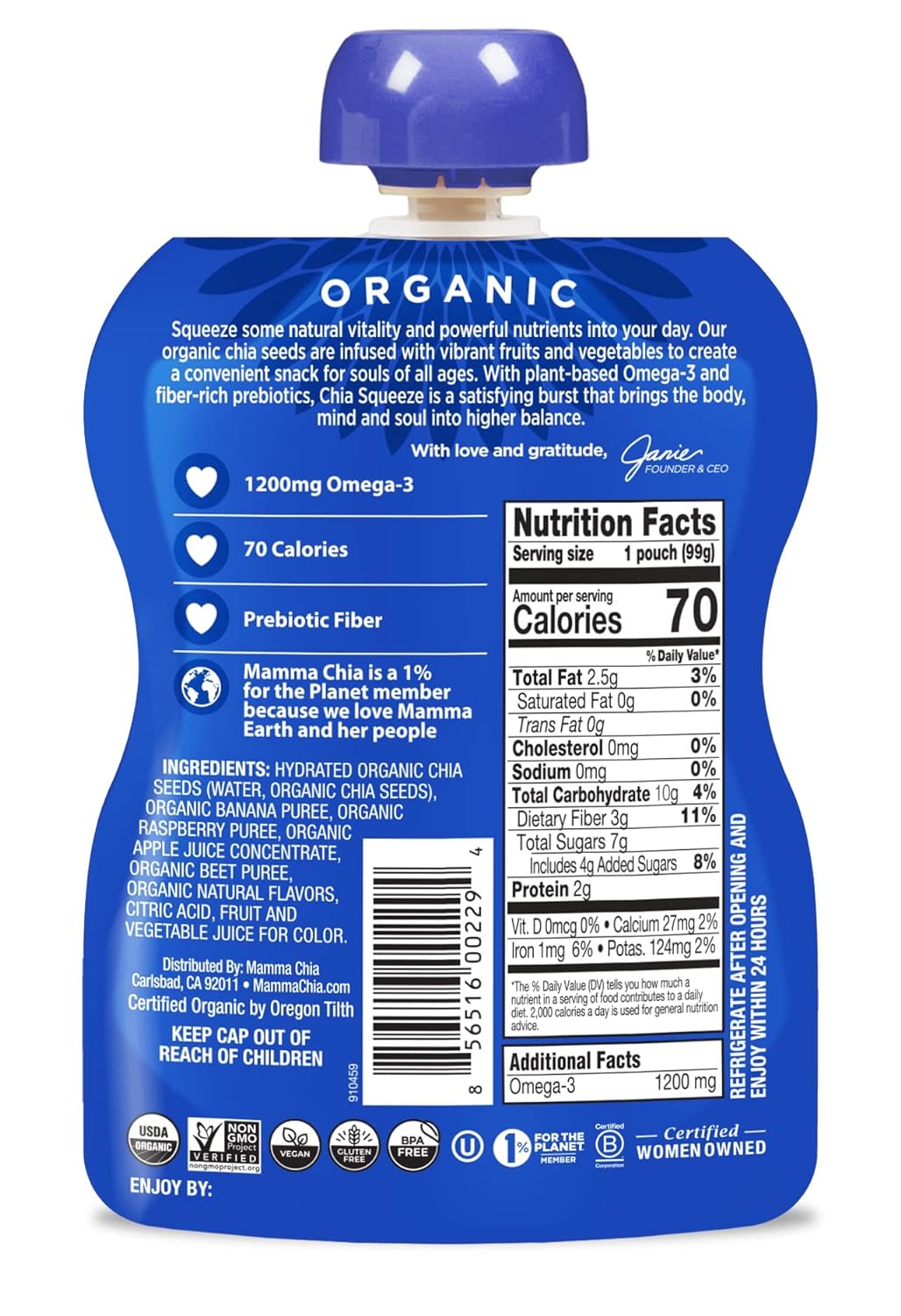 Mamma Chia Organic Vitality Squeeze Snack, Wild Raspberry, 3.5 Ounce (Pack Of 16)