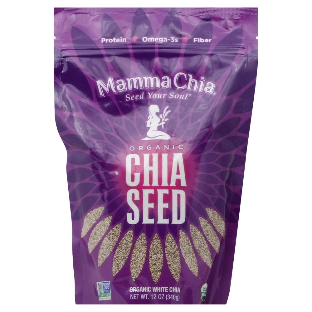 Mamma Chia® Organic Chia Seed.Seed your soul®.Protein.Omega-3s.Fiber.USDA Organic.Organic white chia.Net Wt 12 oz (340 g). Store in a cool, dry place away from sunlight. Mamma Chia Organic White Chia Seeds, 12 Oz