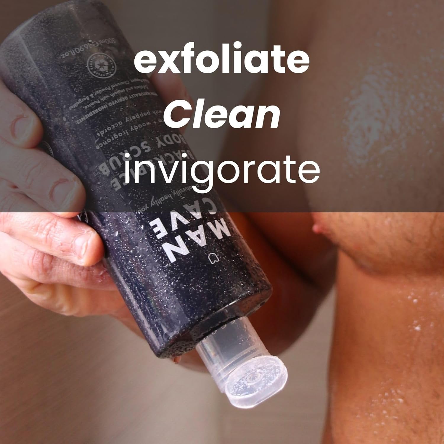 Mancave Blackspice Body Scrub 200Ml For Men, Warm & Woody Aroma, Exfoliate & Cleanse Skin With Pumice And Charcoal Powder Scrub, Natural Formulation, Vegan Friendly, Made In England