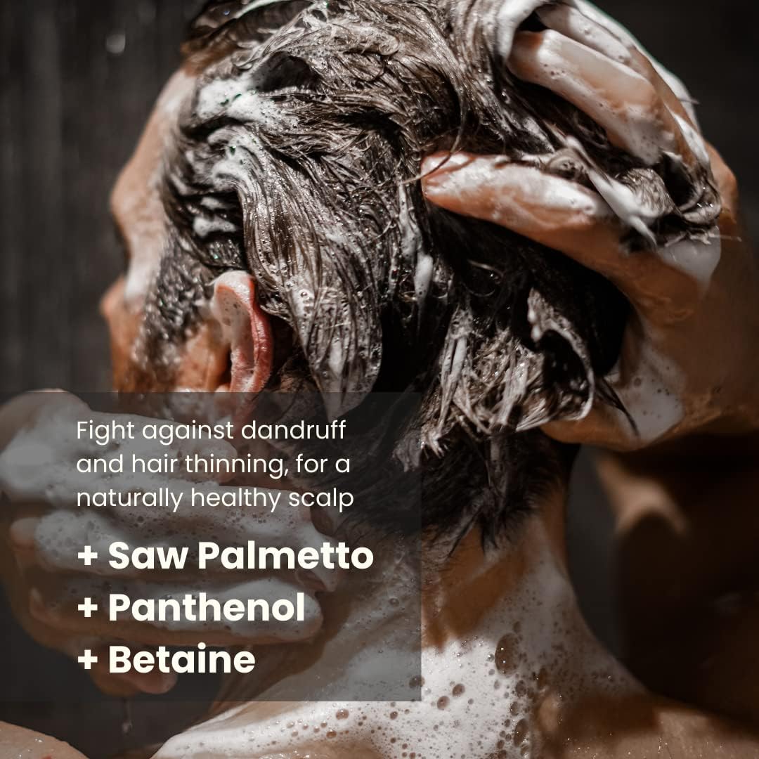 Saw Palmetto, a natural DHT blocker, helps to support healthy hair growth while Panthenol & Betaine help to moisturise and reduce frizz