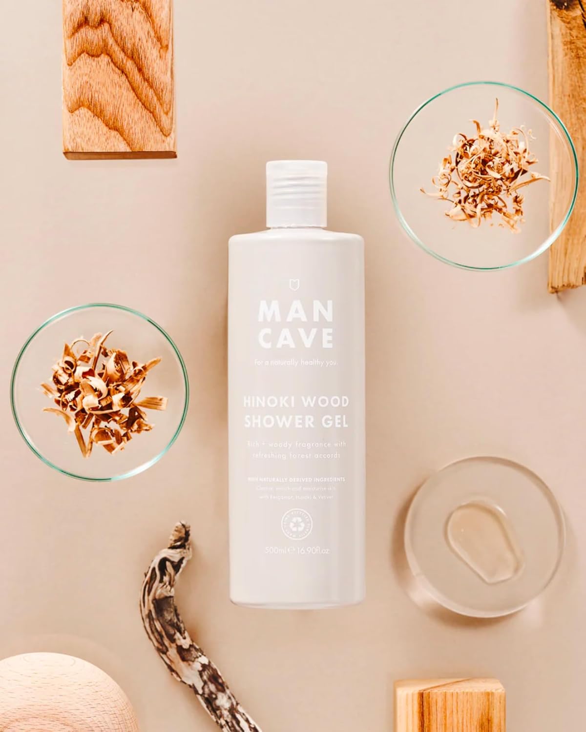 Mancave Hinoki Wood Shower Gel For Men, Warm Woody Aroma With Hinoki Cypress, Bergamot And Vetiver, Sulphate And Paraben Free, Natural, Vegan, Cruelty Free, 500 Ml