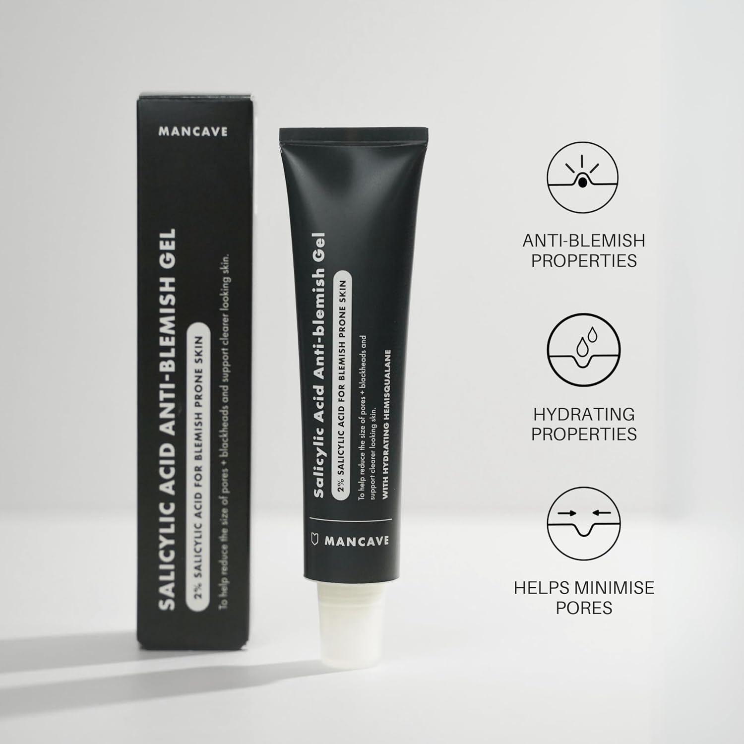 Mancave Salicylic Acid Anti-Blemish Gel 40Ml, Blackhead Remover, Gentle Exfoliation, Vegan-Friendly, Suitable For All Skin Types, Post-Consumer Recycled Packaging, Effective Skin Care