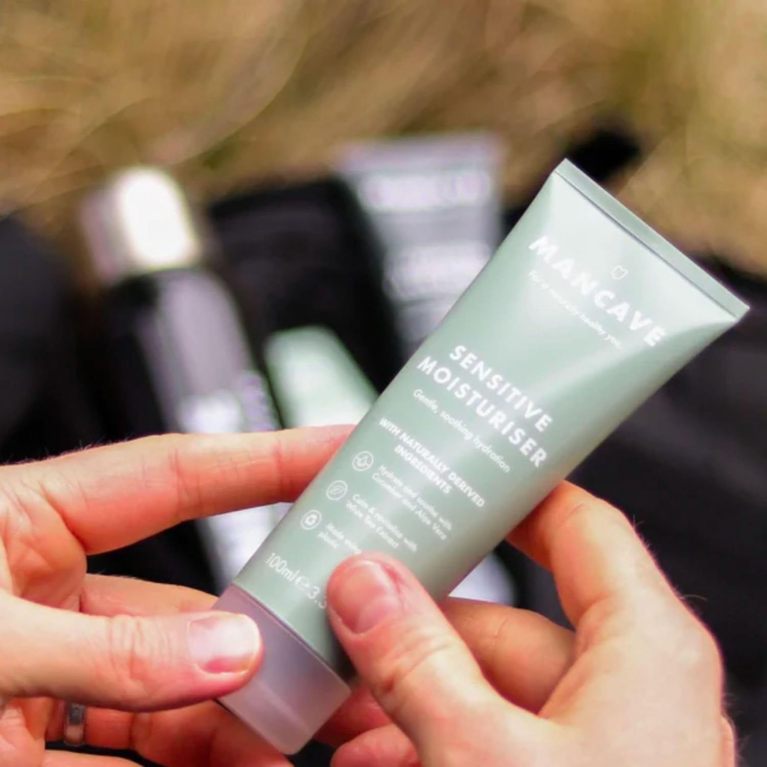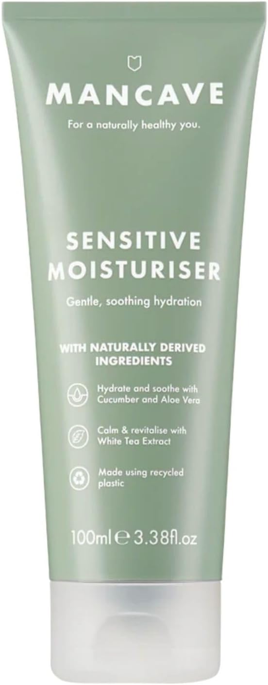Mancave Sensitive Moisturiser 100Ml For Men, Moisturise And Nourish Skin With Aloe Vera & Shea Butter, Dermatologically Tested, Hydrating And Soothing Properties, Natural Formulation, Vegan Friendly