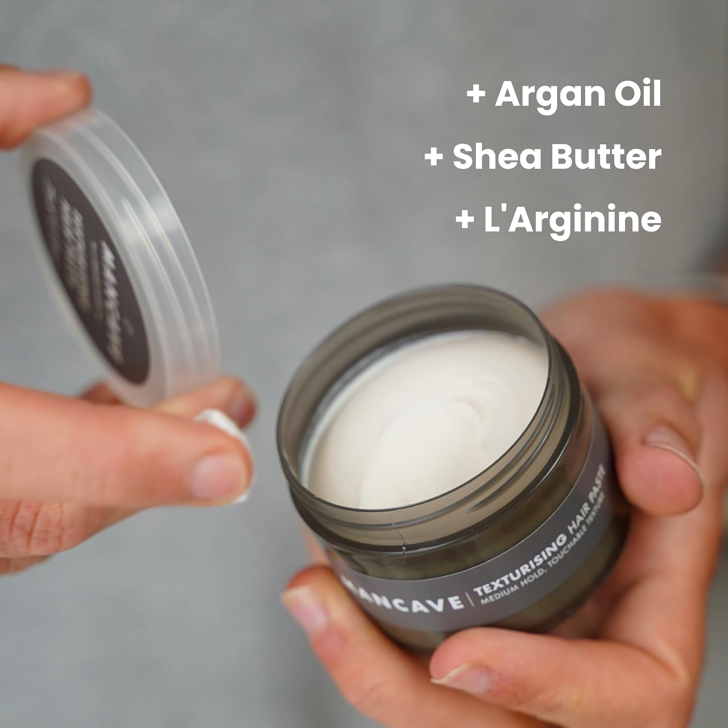 Mancave Texturising Hair Paste For Men, Natural Looking Texture And Definition With Panthenol, Arginine And Caffeine, Flexible And Reworkable Hold, Natural, Vegan, Cruelty Free, 75 Ml