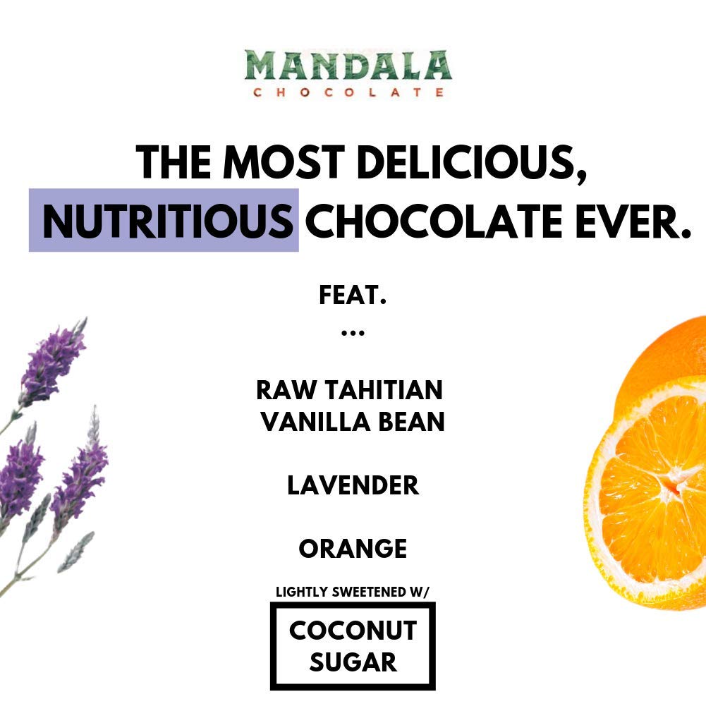 Mandala Superfood Bean-To-Bar Chocolate (2.2 Oz Bar) Dairy-Free, Low Glycemic, Organic, Artisan, Vegan, Made With Real Citrus (Lavender Citrus, 3-Pack)