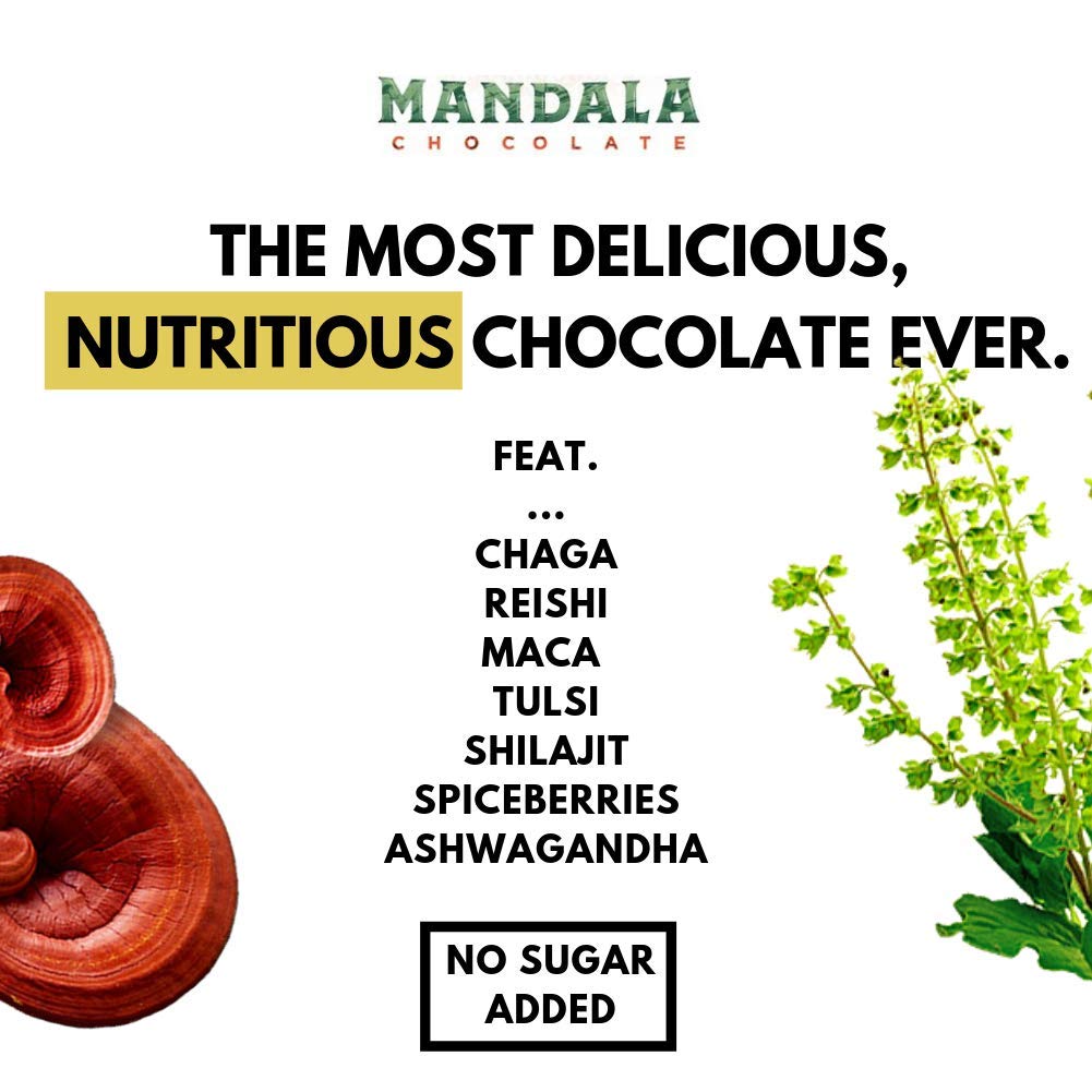 Mandala Superfood Sugar-Free Bean-To-Bar Chocolate (2.2 Oz Bar) Organic, Paleo, Keto, Artisan, Healthy, Vegan, Made With Adaptogens (Cacao Alchemy, 3-Pack)