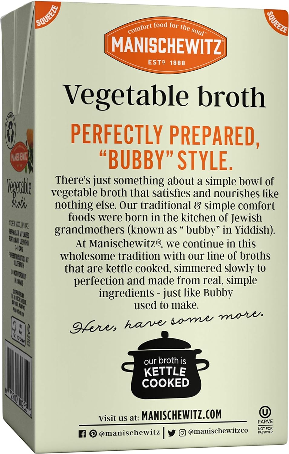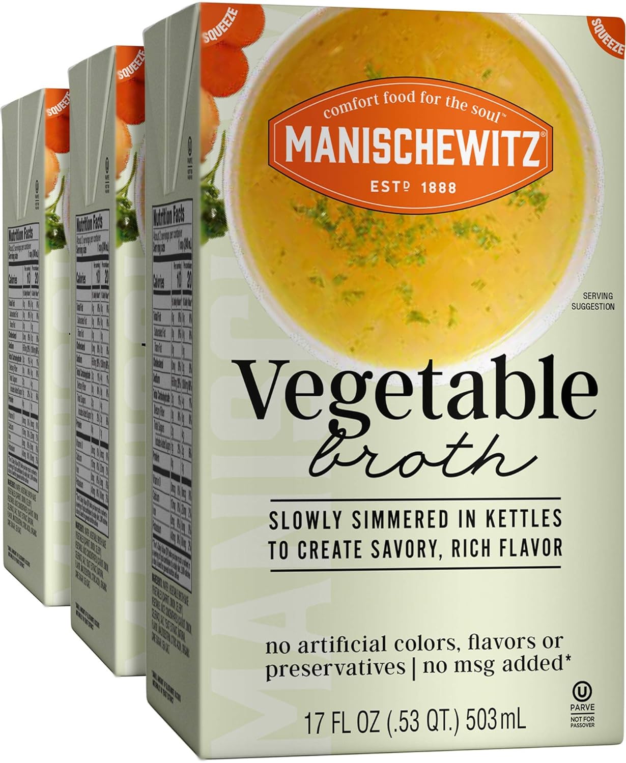 Manischewitz Aseptic Vegetable Broth 17Oz (3 Pack), Flavorful, Kettle Cooked, Slowly Simmered