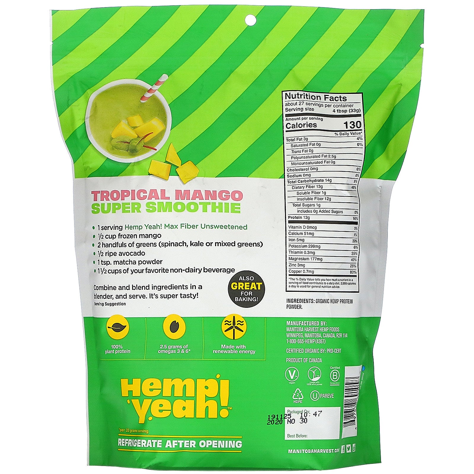 Manitoba Harvest, Hemp Yeah! Max Fiber Hemp Protein Powder, Unsweetened (907 G)