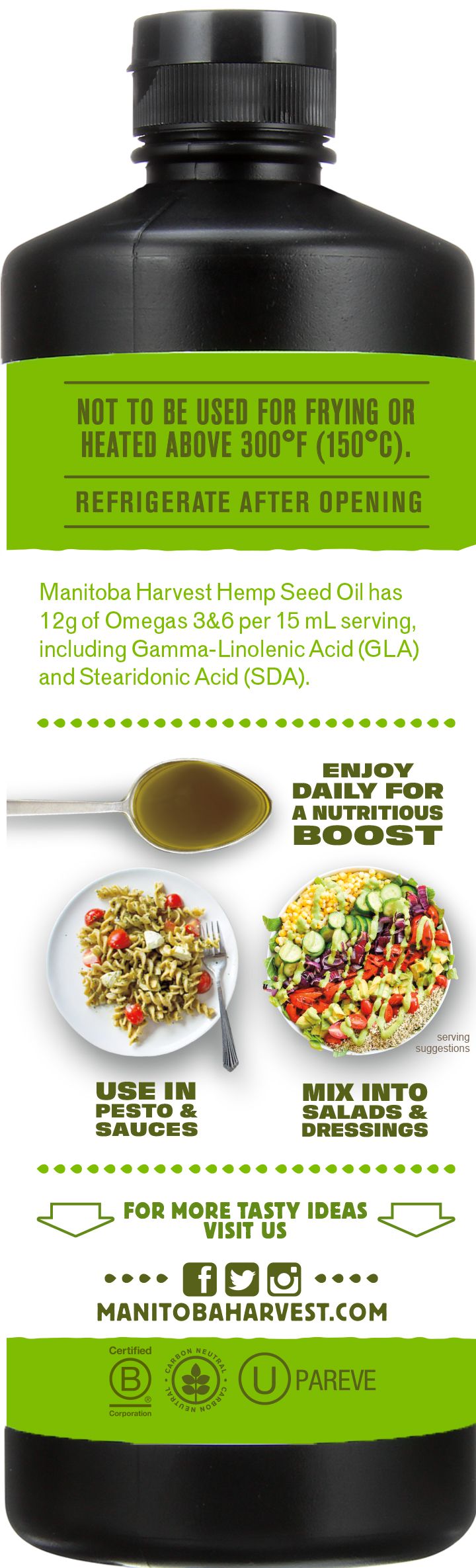 Hemp oil, one of our very first products, is a raw, cold-pressed, vegan-friendly oil that contains omegas without any additives or colouring. Organic Hemp Seed Oil 16.9 fl oz