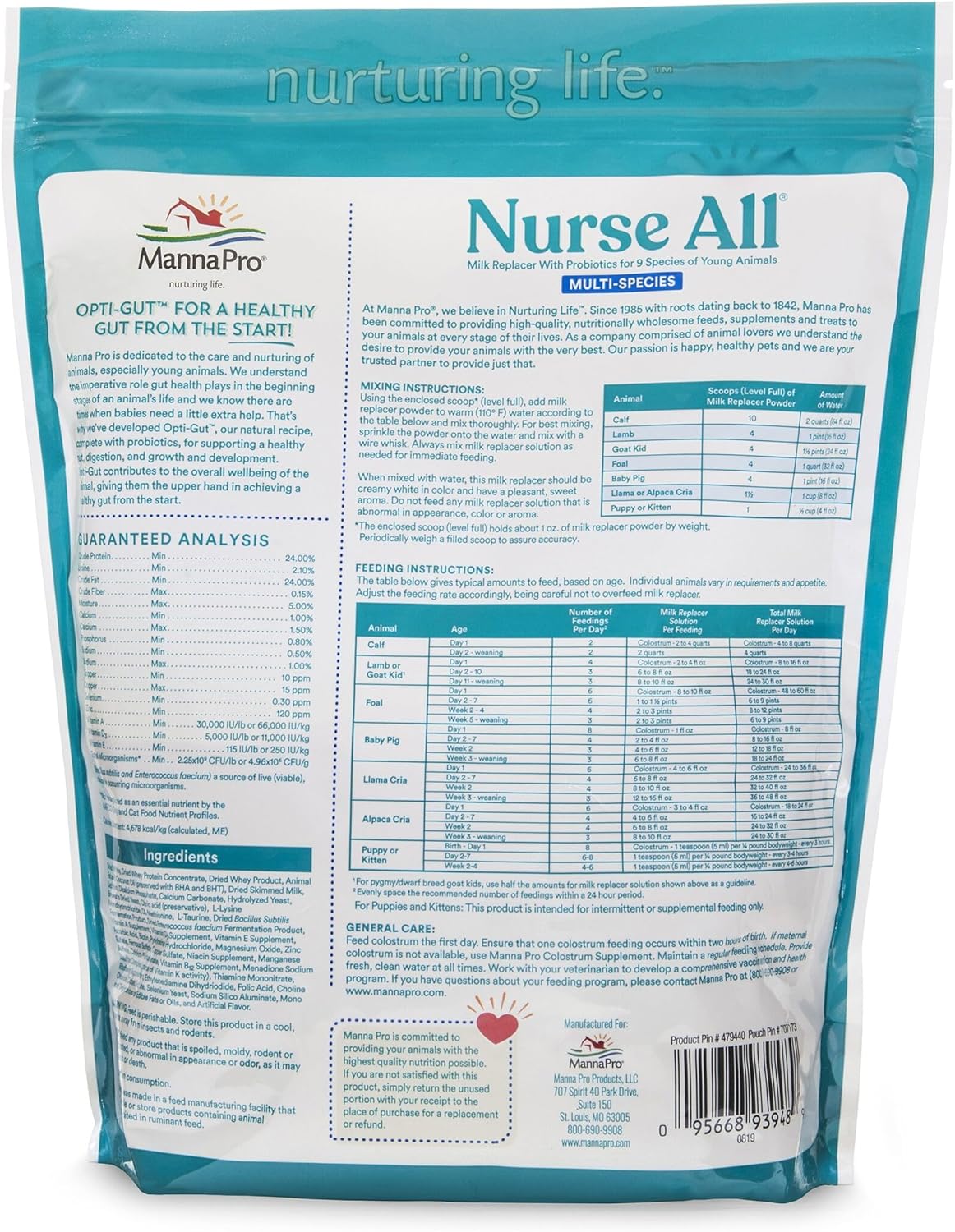 Manna Pro Nurse All Multi-Species Milk Replacer | Great For Calves, Lambs, Goat Kids, Foals, Baby Pigs, Llamas, Alpaca Crias, Puppies & Kittens | Provides Complete Nutrition | 3.5 Lb