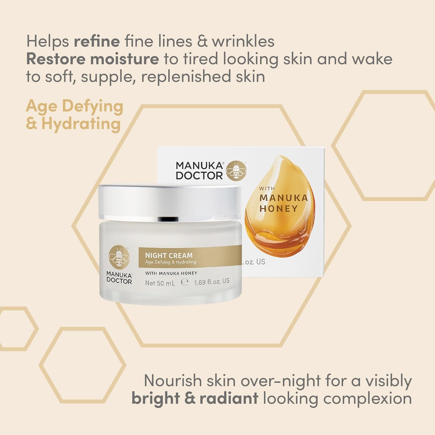Manuka Doctor Night Cream - Age Defying And Hydrating Face Moisturizer With Manuka Honey, Firming, Helps Refine Fine Lines & Wrinkles (1.69 Fl Oz)