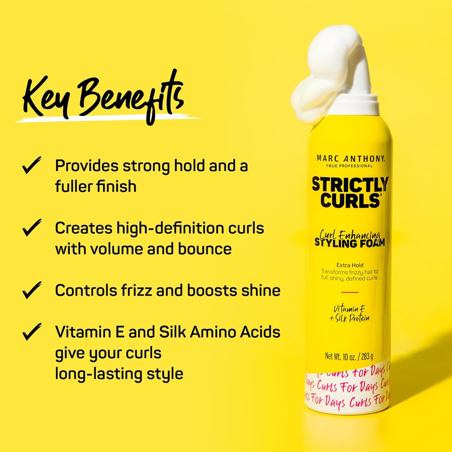 Marc Anthony Strictly Curl Enhancing Styling Foam , Extra Hold - Vitamin E & Silk Proteins Transforms Frizzy Hair To Full , Shiny , Defined Curls - Sulfate-Free Anti-Frizz Mousse Product