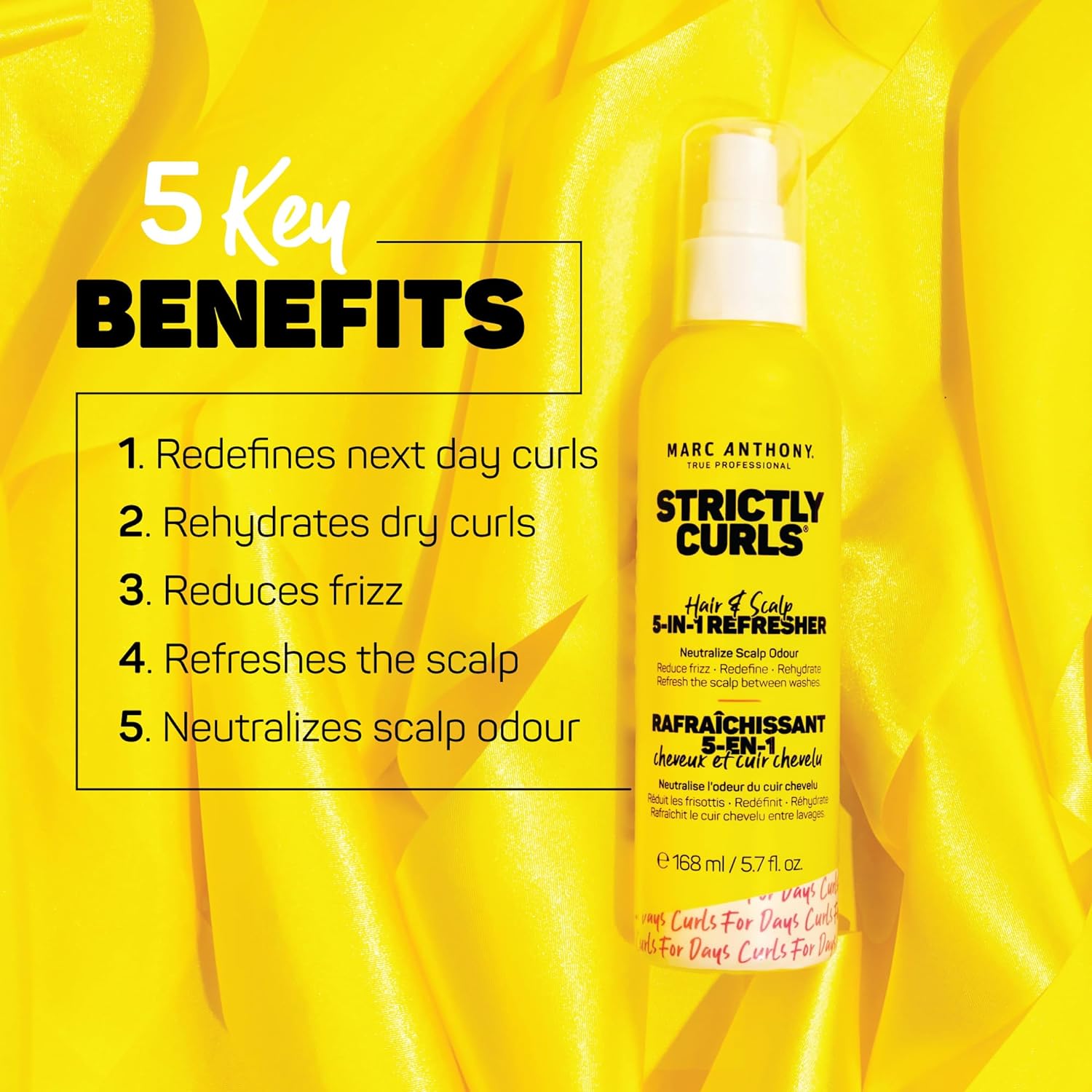 Strictly Curls Hair & Scalp 5-In-1 Refresher: Refresh And Extend Your Style With This Curl Refresher From Marc Anthony. This Unique Formula Moisturizes And Redefines Curls, Leaving Your Hair Looking, Feeling, And Smelling Good. 5.7 Fl Oz