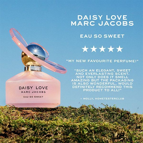 Marc Jacobs Daisy Love Eau So Sweet captures the addictive and irresistible spirit of Daisy Love with an unexpected sweet freshness. Sparkling white raspberries reveal a lustrous personality while a soft floral airiness and delicate musk immerse you in the sweetness of the moment. This fresh gourmand fragrance creates an enticing atmosphere that truly embraces its name. Fluffy, flossy, flirty