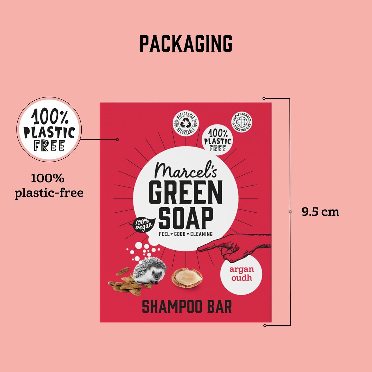Marcel's Green Soap - Shampoo Bar Argan & Oudh - Daily use, plastic and sulfate free - Saves 3 bottles of regular Shampoo - 100% Eco friendly - 100% Vegan - 97% Biodegradable - 90 G