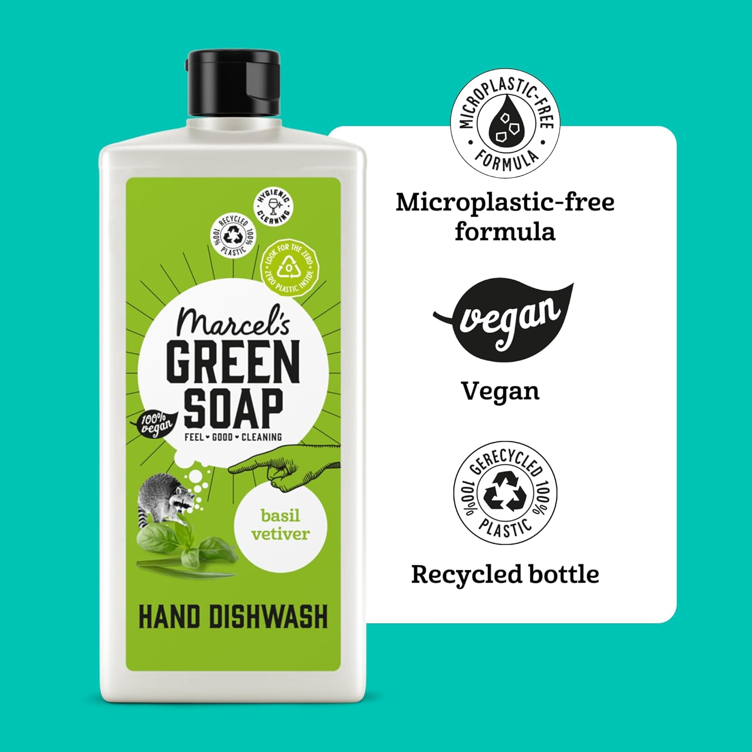 Marcel'S Green Soap - Washing Up Liquid Basil & Vetiver - Dishwashing Liquid - Vegan - Recycled Plastic - 97% Biodegradable - 500 Ml
