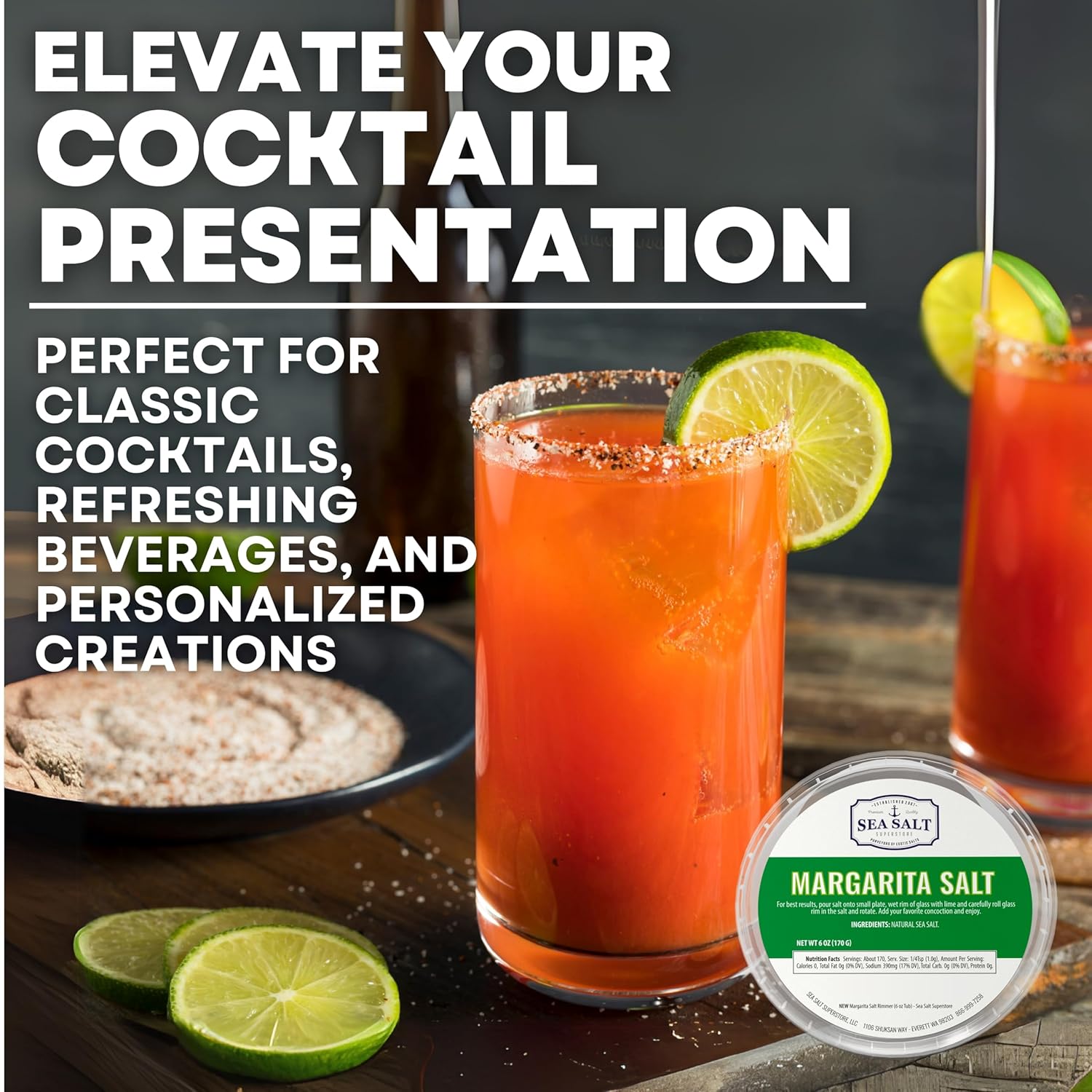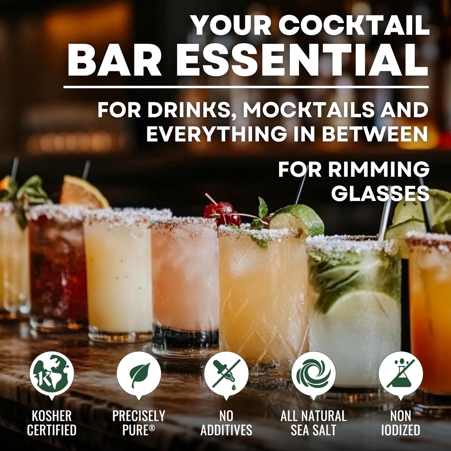 About this item Cocktail Enhancer: Specially crafted for Garnishing glasses, our margarita Garnishing salt adds the perfect touch to your favorite cocktails. This flavored Garnishing salt for cocktails enhances the look and flavor of margaritas, Ruddy Marys, and mojitos. Sublime Crunch and Flavor: With its unique texture, our margarita glass garnishing for Cocktails delivers a satisfying crunch and natural saltiness that elevates every sip. It's designed to enhance cocktail mixes for a memorable drinking experience. Versatile Use: More than just a cocktail companion, this drink garnishing salt also adds a delightful kick to various dishes. Sprinkle it on your favorite homemade recipes to elevate their flavor profiles and create a memorable dining experience. Pure and Natural Ingredients: Our margarita cocktail Garnishing salt is unrefined and natural, free from MSG, GMOs, dairy, soy, gluten, and anti-caking agents. It’s a guilt-free seasoning option for any diet, ensuring quality and taste in every sprinkle. Crafted for Cocktail Lovers: Perfect for home bartenders and mixologists, our cocktail salt for margarita garnishing adds restaurant-quality flavor to your drinks. Elevate your presentations and impress guests with Sea Salt Superstore's margarita salt. See more product details,Cocktail Enhancer: Specially crafted for Garnishing glasses, our margarita Garnishing salt adds the perfect touch to your favorite cocktails. This flavored Garnishing salt for cocktails enhances the look and flavor of margaritas, Ruddy Marys, and mojitos,Sublime Crunch and Flavor: With its unique texture, our margarita glass garnishing for Cocktails delivers a satisfying crunch and natural saltiness that elevates every sip. It's designed to enhance cocktail mixes for a memorable drinking experience,Versatile Use: More than just a cocktail companion, this drink garnishing salt also adds a delightful kick to various dishes. Sprinkle it on your favorite homemade recipes to elevate their flavor profiles and create a memorable dining experience,Pure and Natural Ingredients: Our margarita cocktail Garnishing salt is unrefined and natural, free from MSG, GMOs, dairy, soy, gluten, and anti-caking agents. It’s a guilt-free seasoning option for any diet, ensuring quality and taste in every sprinkle,Crafted for Cocktail Lovers: Perfect for home bartenders and mixologists, our cocktail salt for margarita garnishing adds restaurant-quality flavor to your drinks. Elevate your presentations and impress guests with Sea Salt Superstore's margarita salt