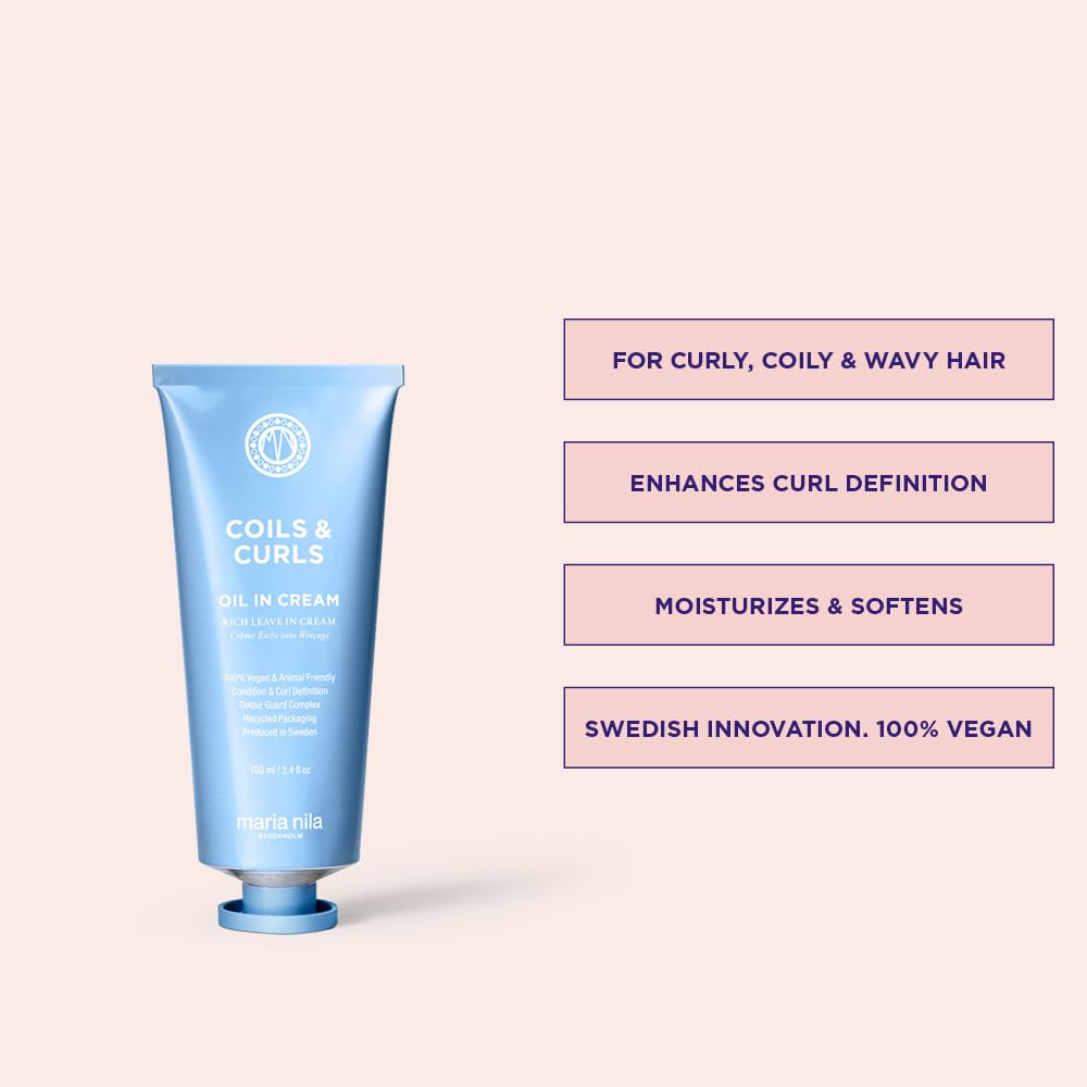 Maria Nila Coils & Curls Oil-In-Cream, 3.4 Fl Oz, For Curly & Wavy Hair, Jojoba oil to Stay Hydrated while Washing, Shea butter for Curl Enhancement, 100% Vegan : Beauty & Personal Care