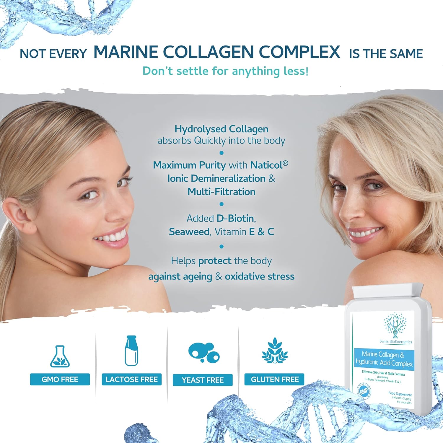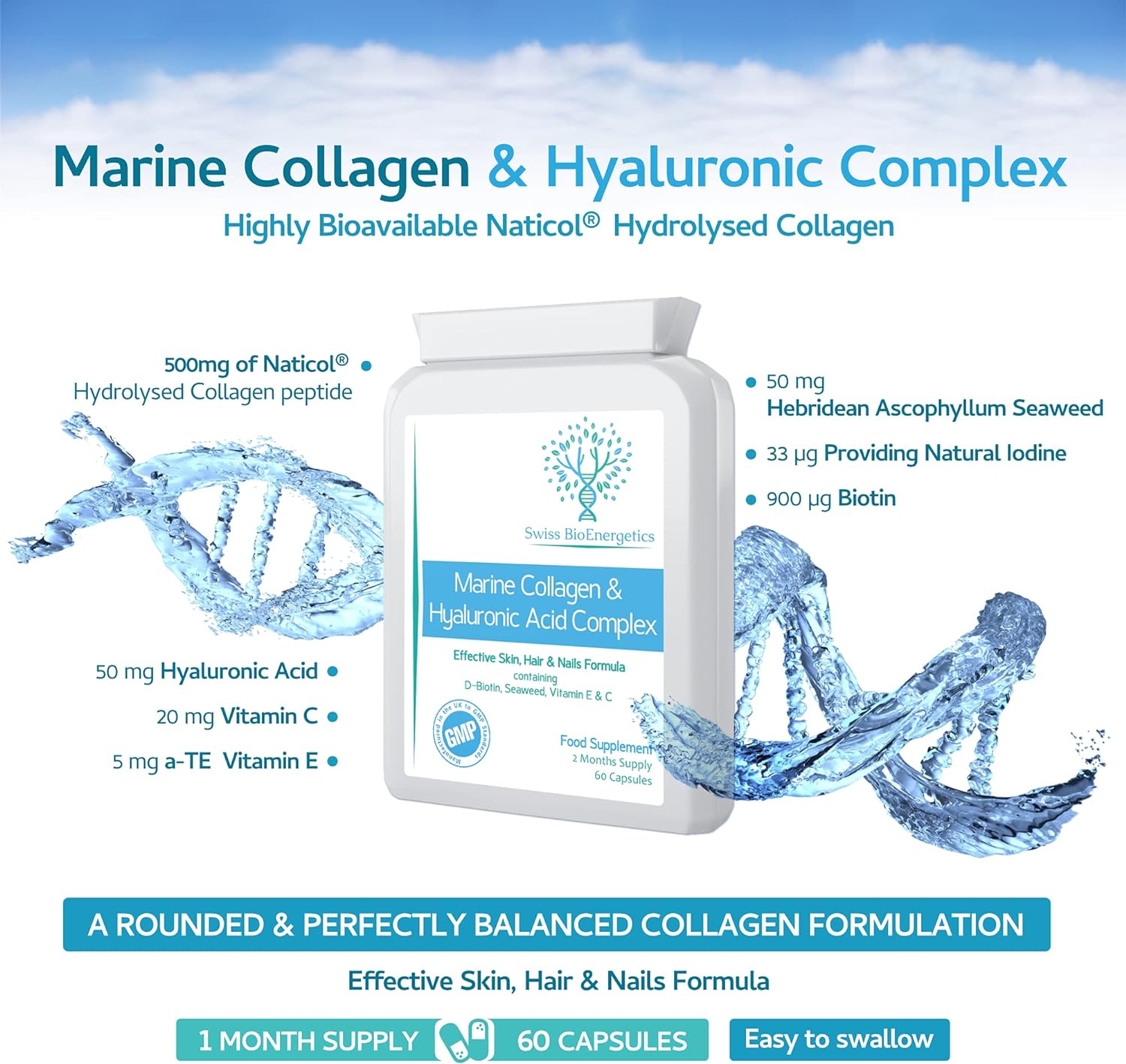 Marine Collagen & Hyaluronic Acid Complex - 60 Capsules - 500Mg Of Highly Bioavailable Naticol Hydrolysed Collagen